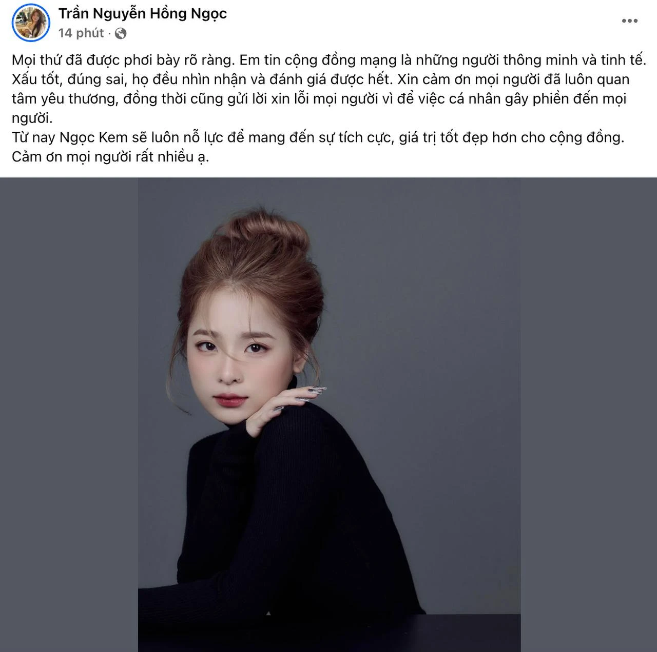 Ngọc Kem cũng lên tiếng khép lại câu chuyện, cảm ơn những người đã quan tâm động viên trong thời gian qua