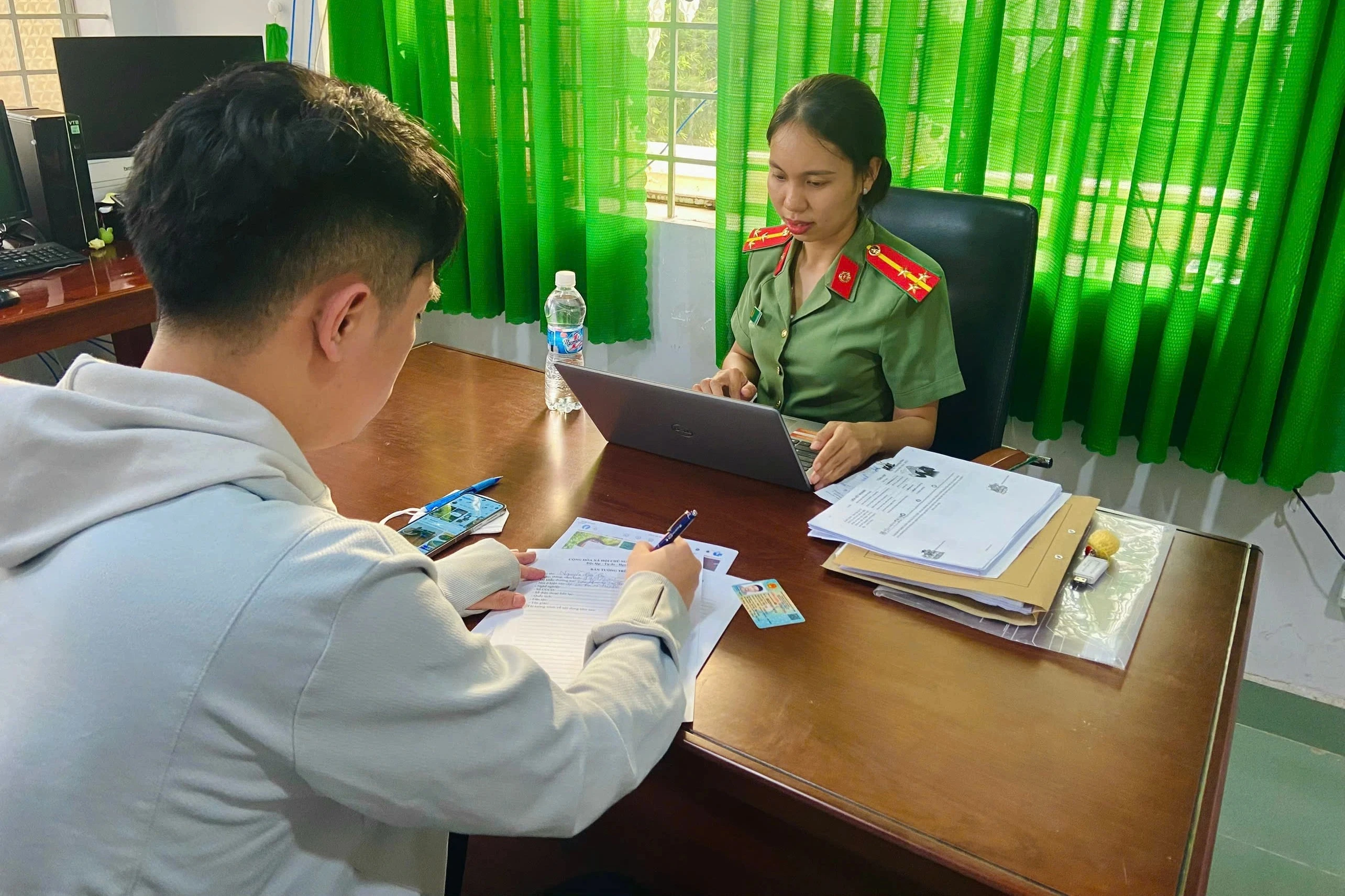 N. tại cơ quan công an (Ảnh: Công an cung cấp).