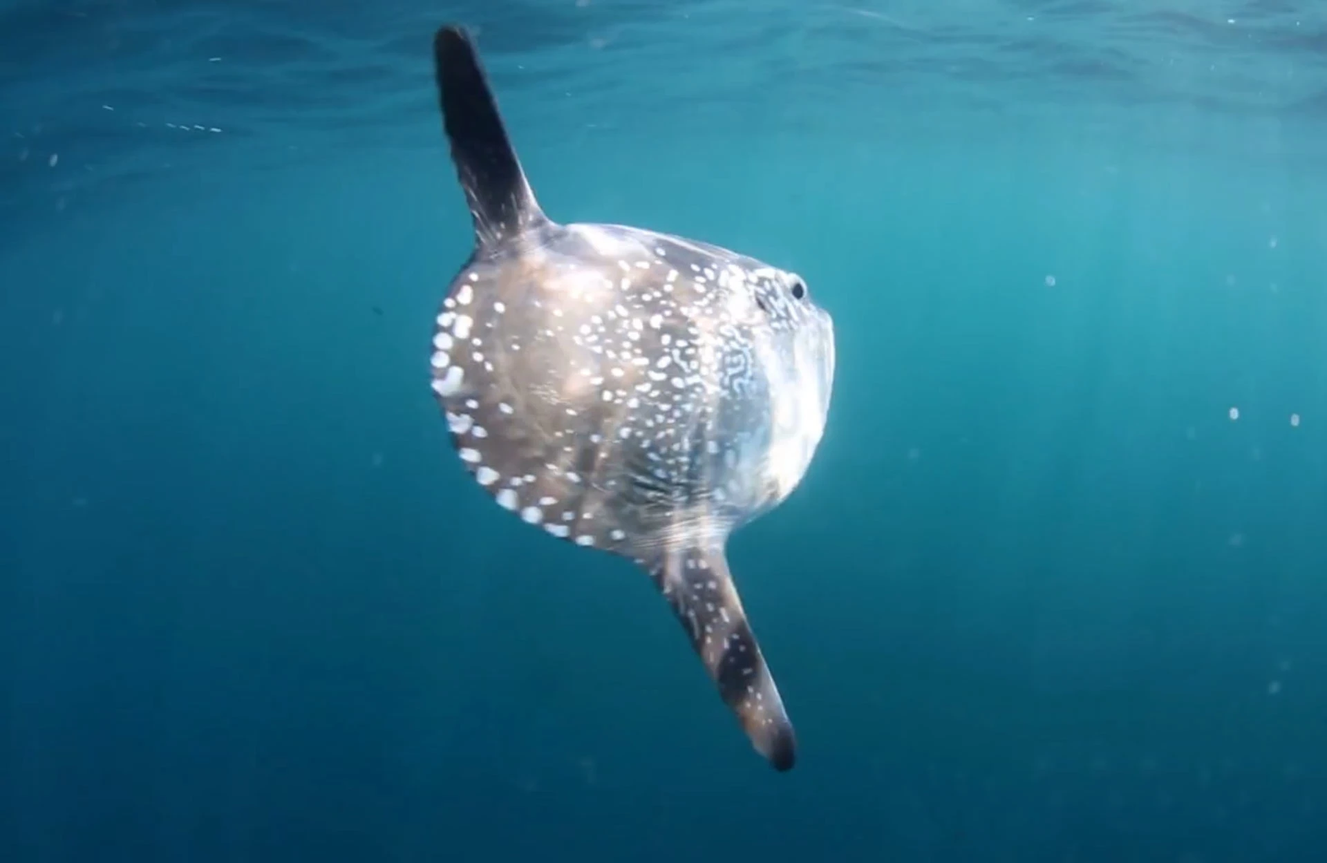 Hình ảnh cho thấy nó là một cá thể Cá mặt trời Hoodwinker quý hiếm (tên khoa học là Mola tecta ). Đây là một trong những loài cá có xương sống lớn nhất thế giới , nhưng hiếm khi được nhìn thấy ở bán cầu bắc .