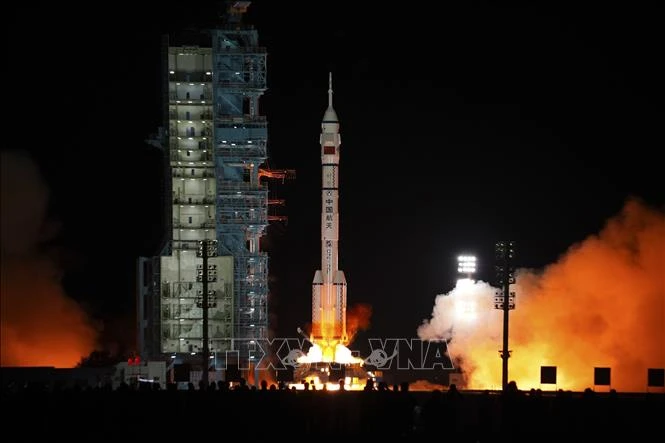 Tên lửa đẩy Trường Chinh-2F mang theo tàu vũ trụ Thần Châu-21 rời bệ phóng tại Trung tâm phóng vệ tinh Tửu Tuyền ở Tây Bắc Trung Quốc, đêm 31/10/2025. Ảnh tư liệu: THX/TTXVN