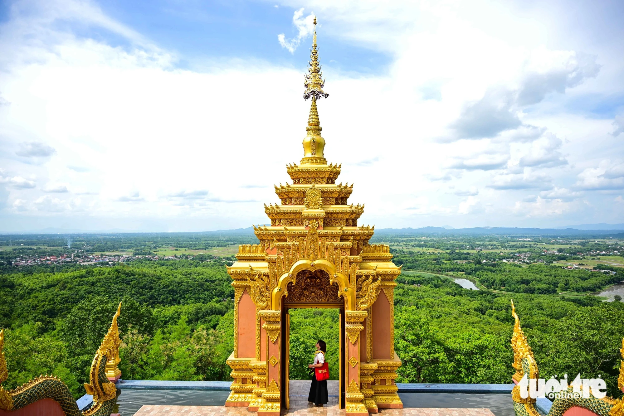 Khuôn viên chùa được tô điểm bằng các bảo tháp vàng tinh xảo, cổng vòm trang trí công phu, cùng nhiều công trình kiến trúc được chế tác tỉ mỉ