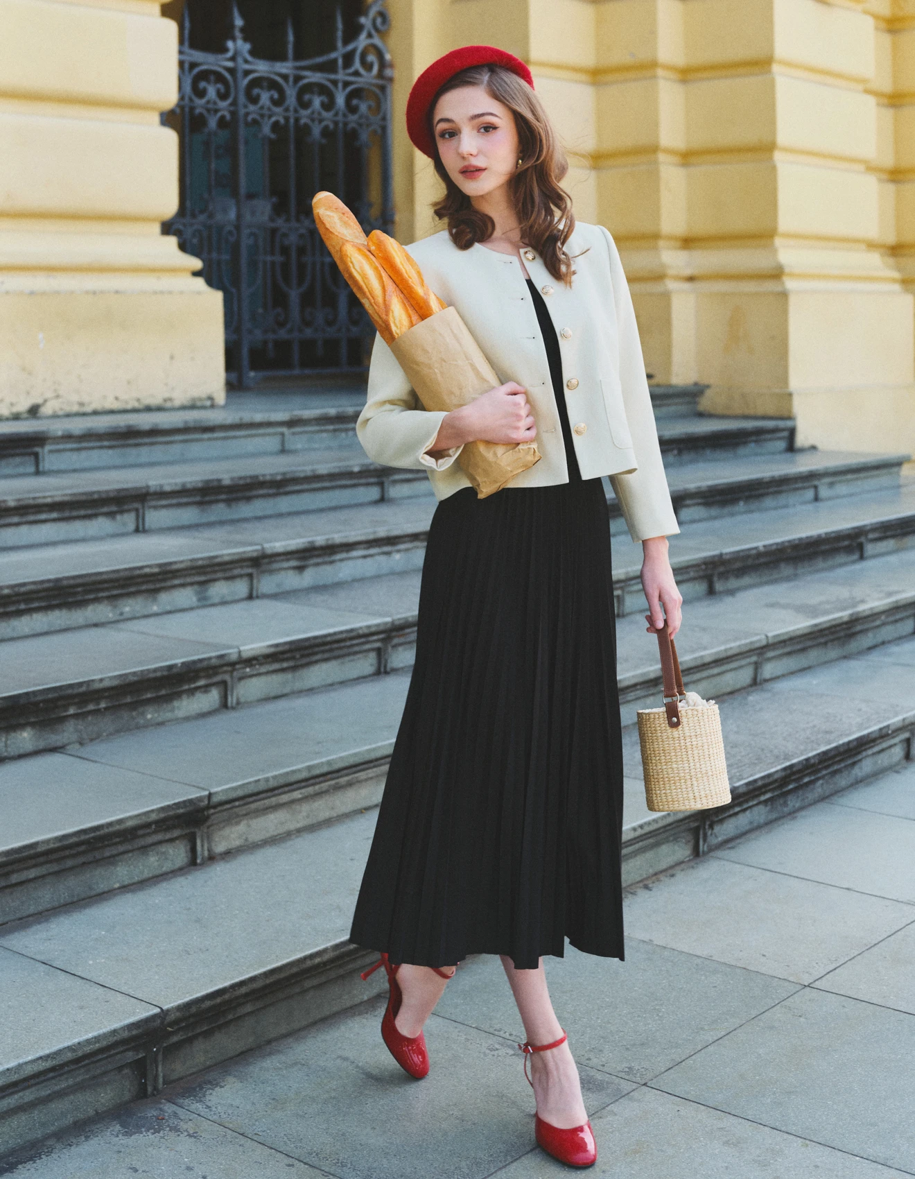 Công thức mặc đẹp dễ áp dụng nhất luôn đơn giản và hướng đến các món đồ cơ bản, thiết yếu có trong tủ đồ. Áo khoác dáng ngắn và váy dài chính là đáp án cho mọi "bài toán" mặc đẹp để nàng đi học, đi làm, đi chơi.