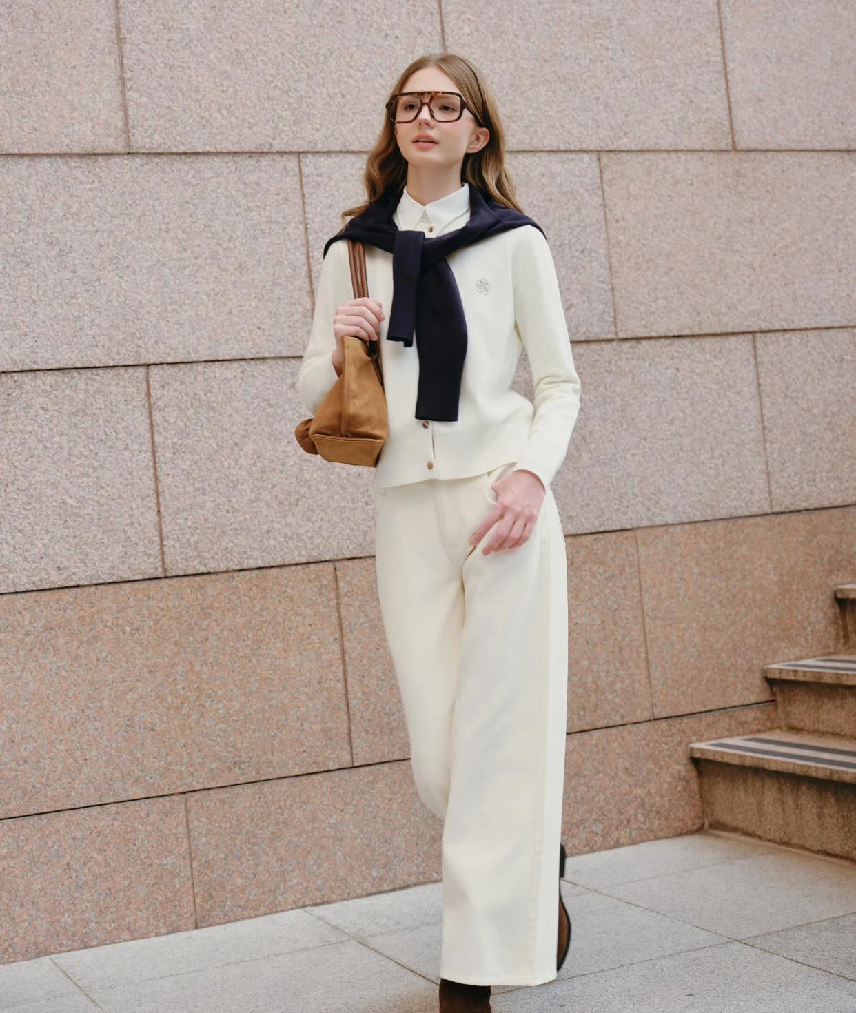 Ngoài những bản phối tone sur tone với váy, bản phối mang tinh thần preppy này cũng được hội chị em yêu thích. Áo cardigan trắng giữ dáng người thanh thoát. Trong khi quần denim ống lửng tạo sự năng động và phóng khoáng