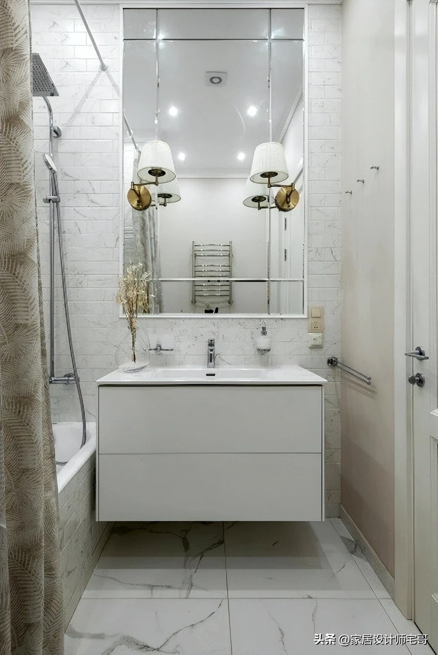 - Rèm nhẹ nhàng phân tách khu vực tắm - rửa mặt, tạo nên cảm giác spa tại gia.
