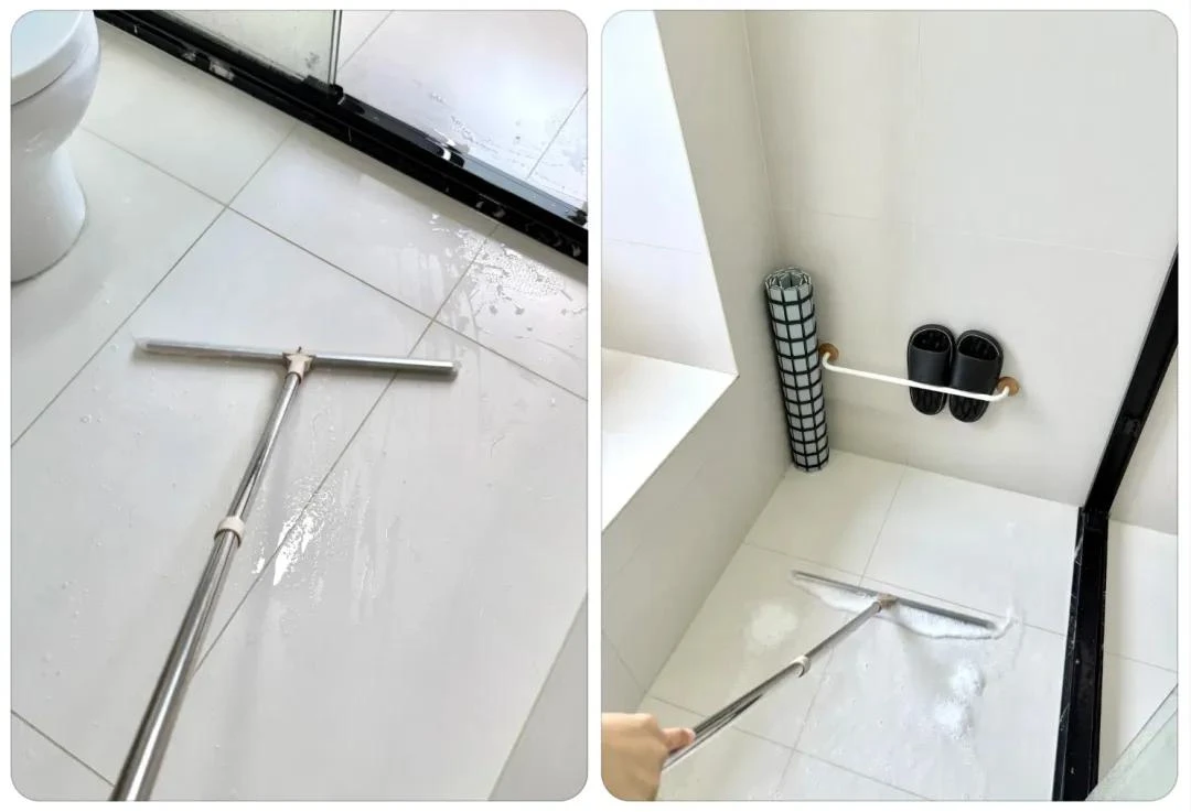 Không phải cây lau nhà, mà là lưỡi gạt nước silicon . Tôi để nó ngay trong phòng tắm và dùng mỗi ngày sau khi tắm: gạt nhanh nước đọng, tóc rơi trên sàn, chỉ 1-2 phút là xong.