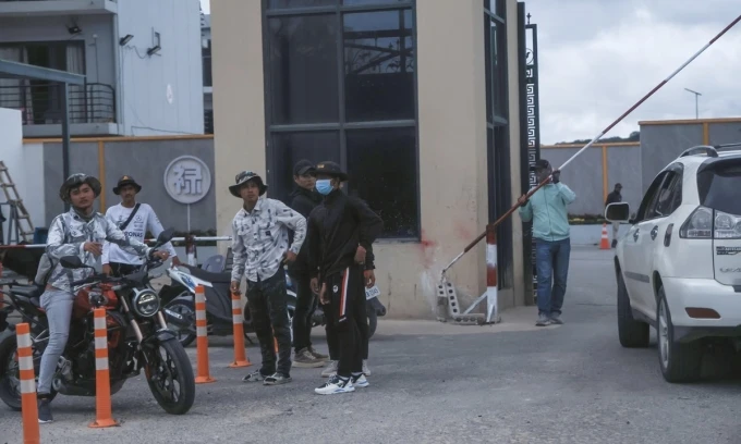 Đội bảo vệ bên ngoài một khu phức hợp ở Công viên Quốc gia Bokor ngày 16/10. Ảnh: Chosun