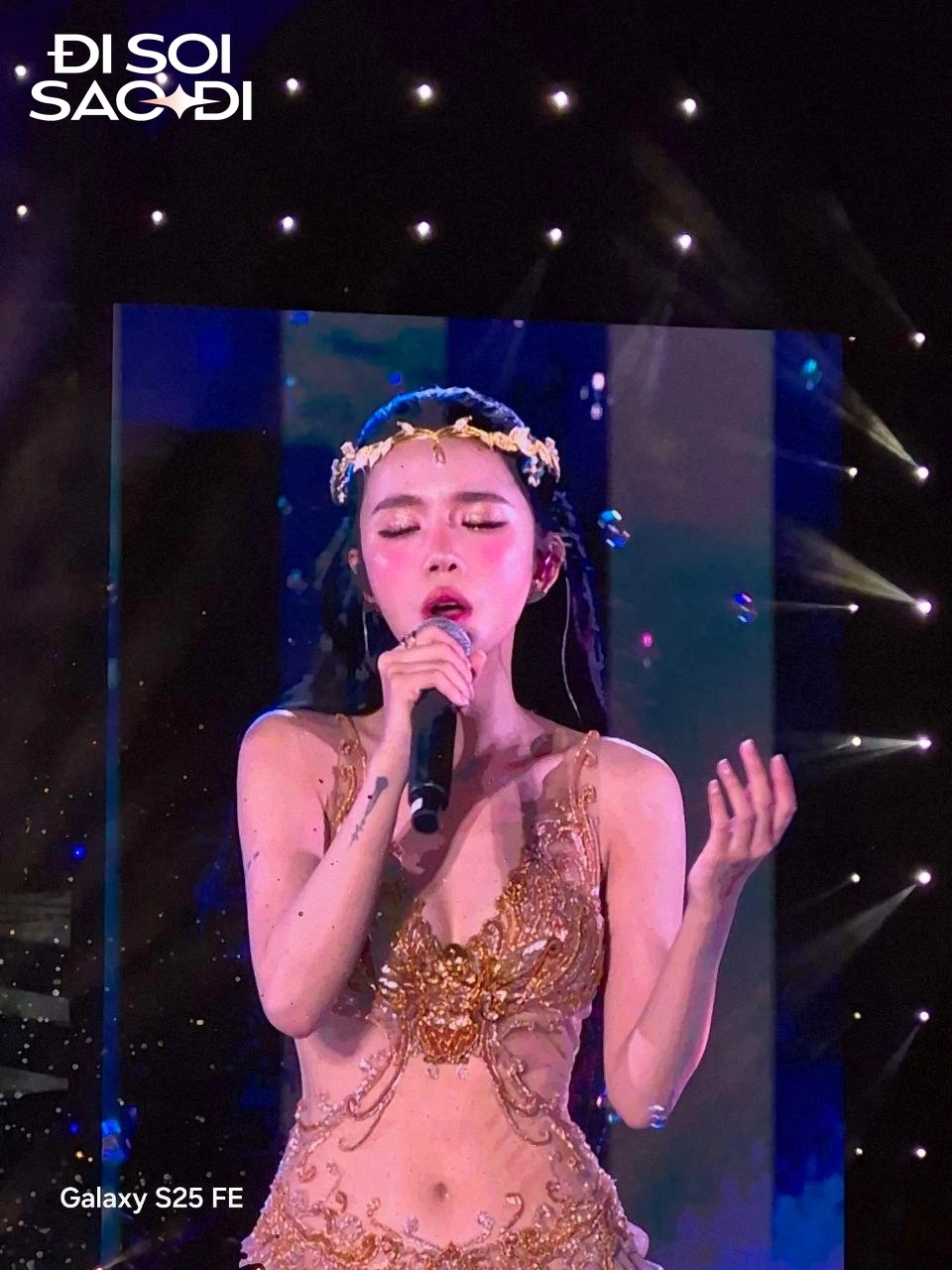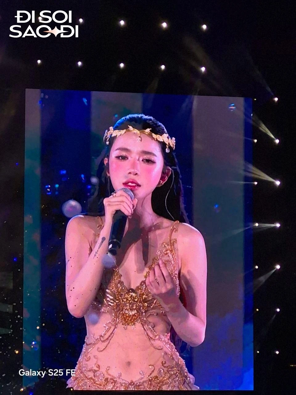 Tại đây, LyLy diện lên chiếc váy vàng lấp lánh có thiết kế tôn dáng, chiếc eo con kiến hiện lên nét căng. Cô nàng gây ấn tượng với visual gợi nhớ đến nữ thần sắc đẹp trong thần thoại Hy Lạp, như "xé sử bước ra". Qua màn hình LED, dung mạo xinh xắn của LyLy được nhận xét là chấp mọi cam thường, chất lượng máy ảnh thấp nhưng "chủ thể" lại đẹp không cần cà filter.