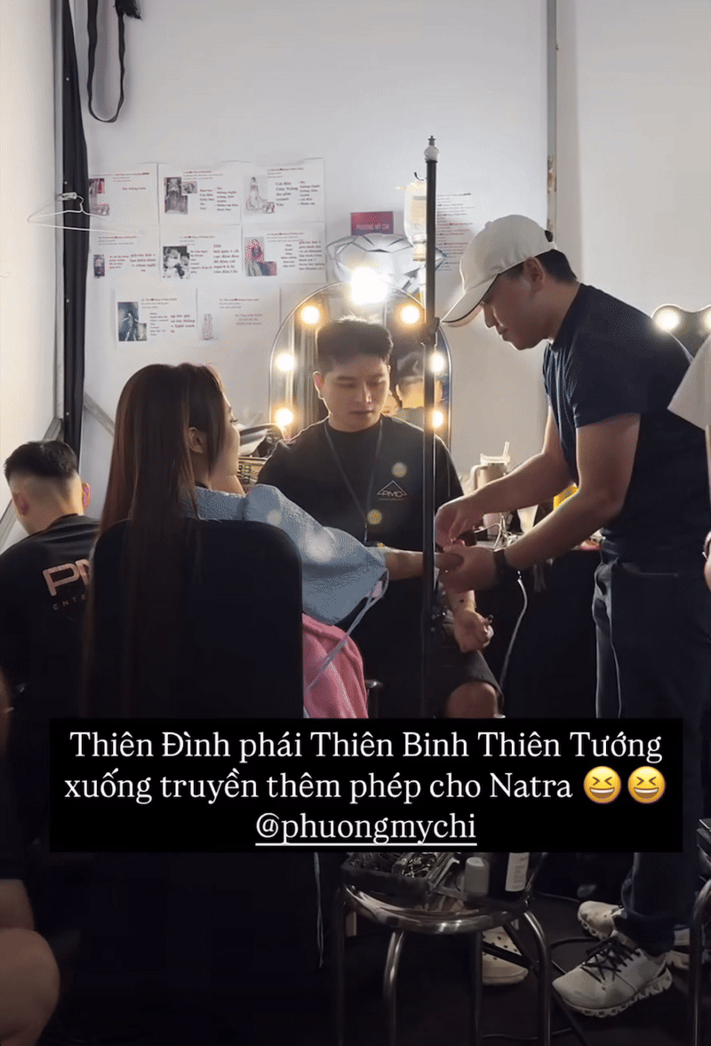 Cụ thể, trước giờ G vài tiếng, Phương Mỹ Chi được trông thấy đang truyền nước, được ekip xung quanh chăm sóc. Đáng chú ý, dù bộ dây truyền và kim tiêm buộc quanh tay nhưng Phương Mỹ Chi vẫn ngồi ngồi đợi makeup artist “hoạ mặt”. Trong giai đoạn nước rút chuẩn bị cho concert, Chị Bảy vẫn nỗ lực hết mình để không gây gián đoạn lịch trình.
