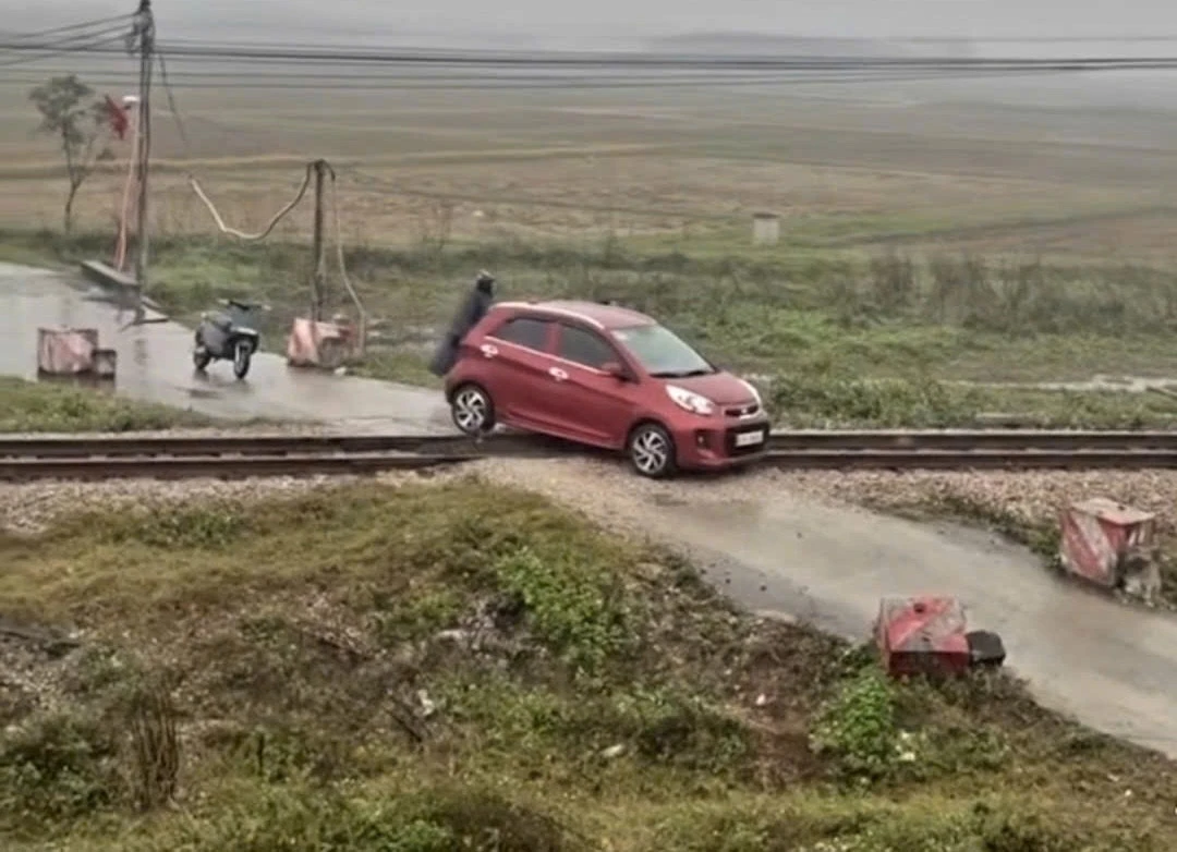 Đoàn tàu AH1 đang di chuyển thì bất ngờ bắt gặp một ô tô chết máy, đứng chắn giữa đường ray.