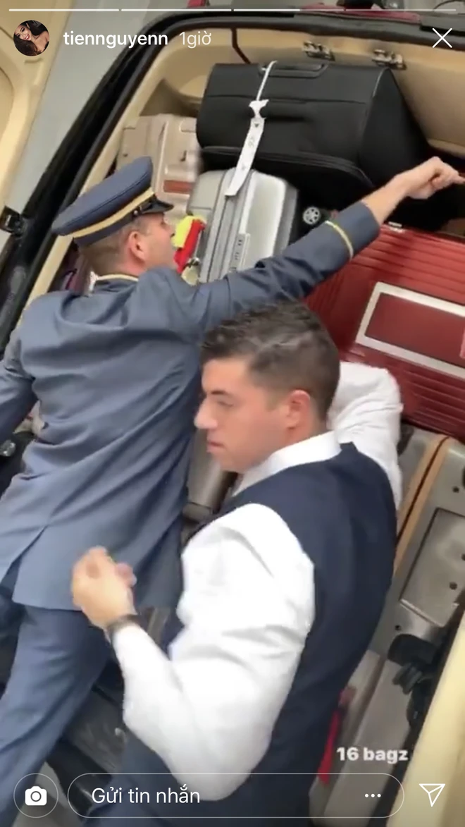 16 chiếc vali khiến Tiên Nguyễn phải di chuyển bằng xe lớn vì đây là phương tiện duy nhất có thể chở hết đống đồ này.