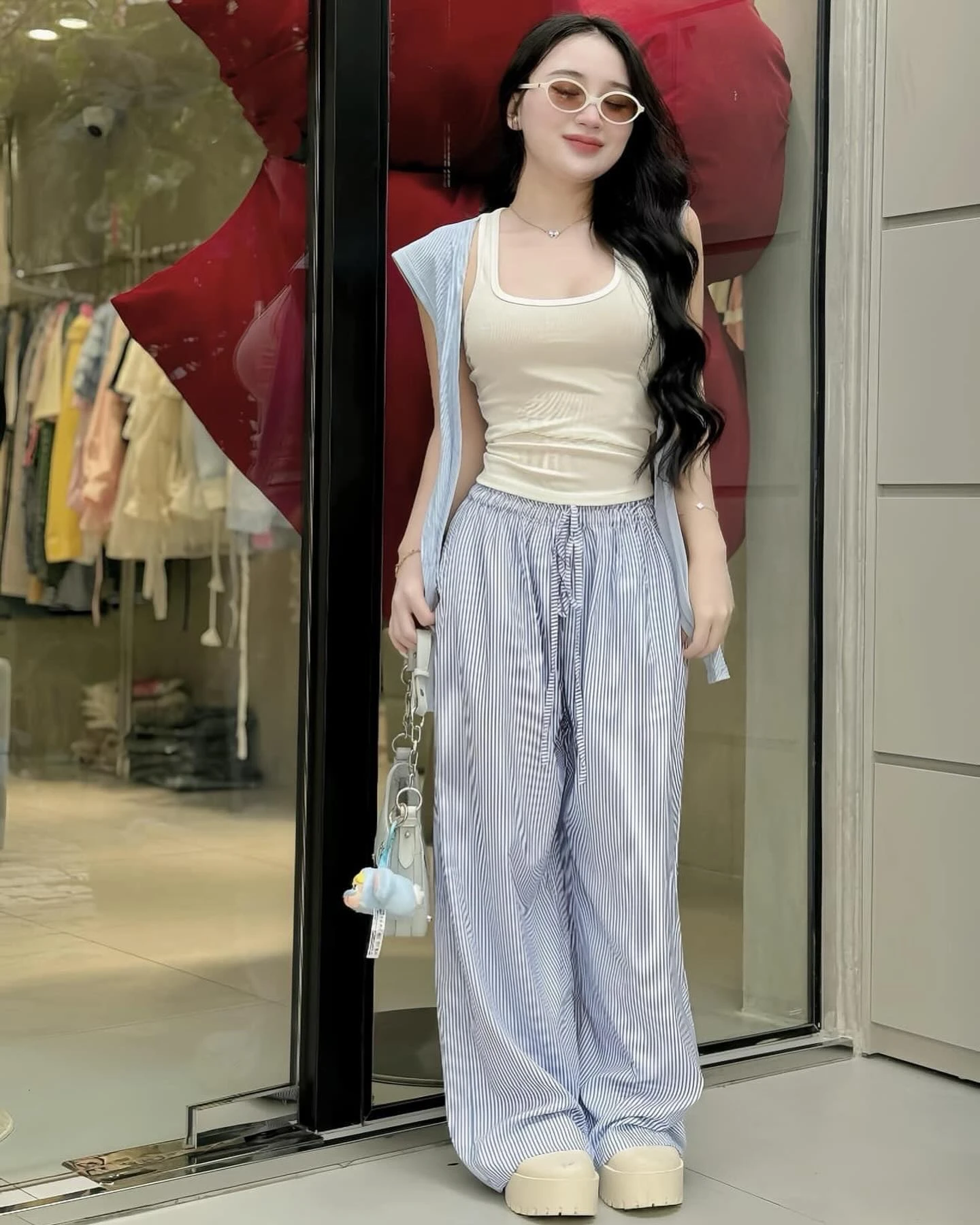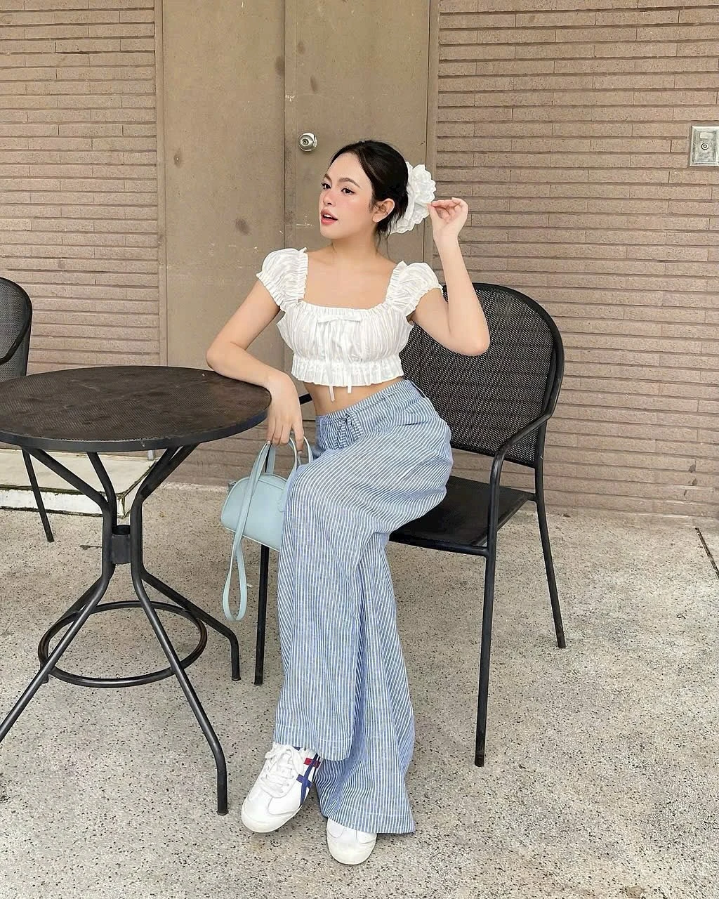 Quần kẻ sọc khi kết hợp với crop top dáng rộng, vừa lịch sự lại rất năng động; nhưng khi kết hợp với crop top dáng ôm đem lại một vibe rất quyến rũ và cuốn hút. Tùy kiểu crop top bạn kết hợp cũng đều sẽ đem lại một vibe rất riêng và thời thượng.