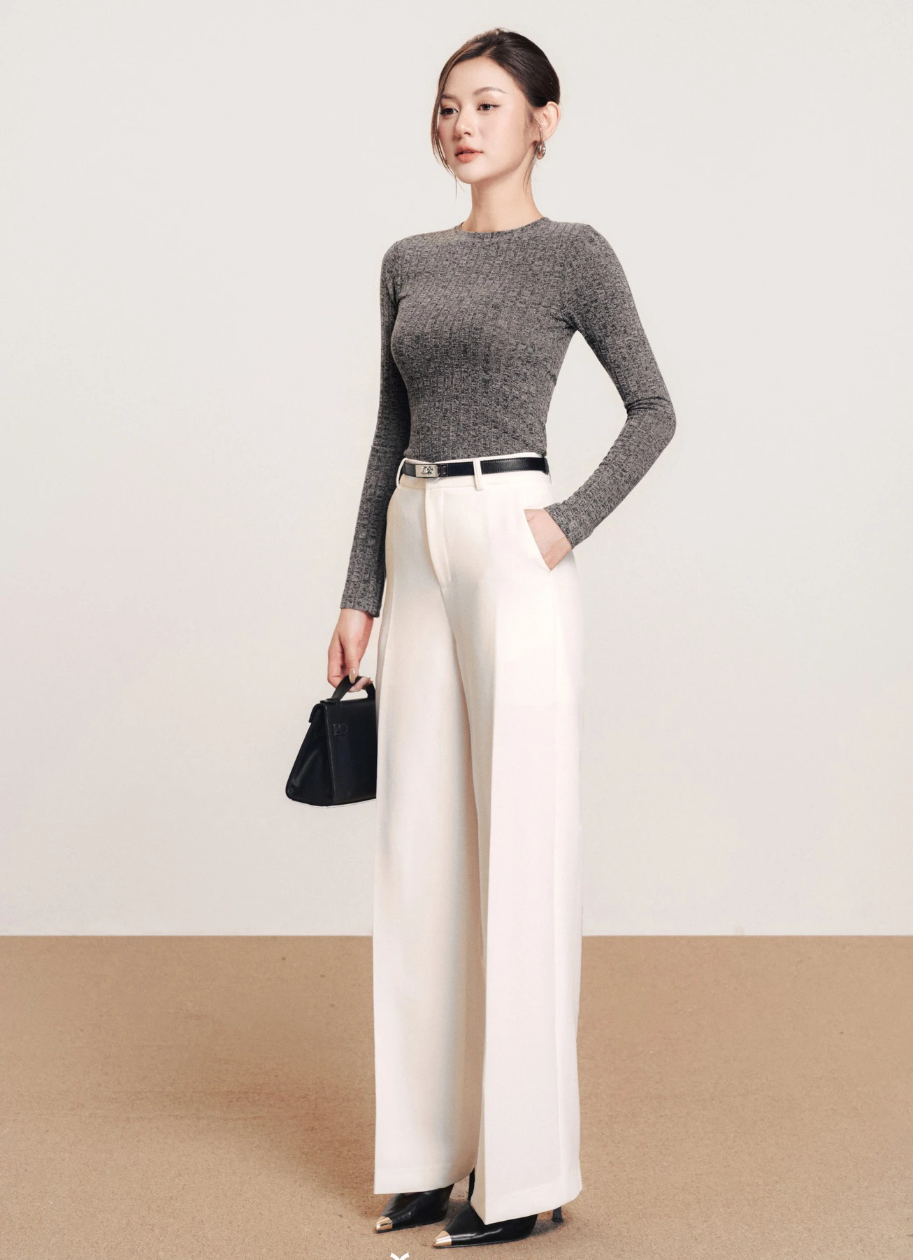 Khéo mặc đẹp, nàng chẳng cần tốn sức mà vẫn thu hút trọn mọi sự chú ý. Quần ống loe , quần ống đứng cạp cao, chân váy bút chì dáng dài nằm trong số những món đồ tối giản nhưng hoàn hảo nhất tủ đồ vì vừa có thể tôn trọn đôi chân dài vừa cực kỳ dễ phối đồ.