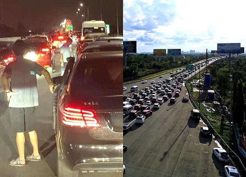 Ô tô xếp hàng dài trên cao tốc hướng về TPHCM