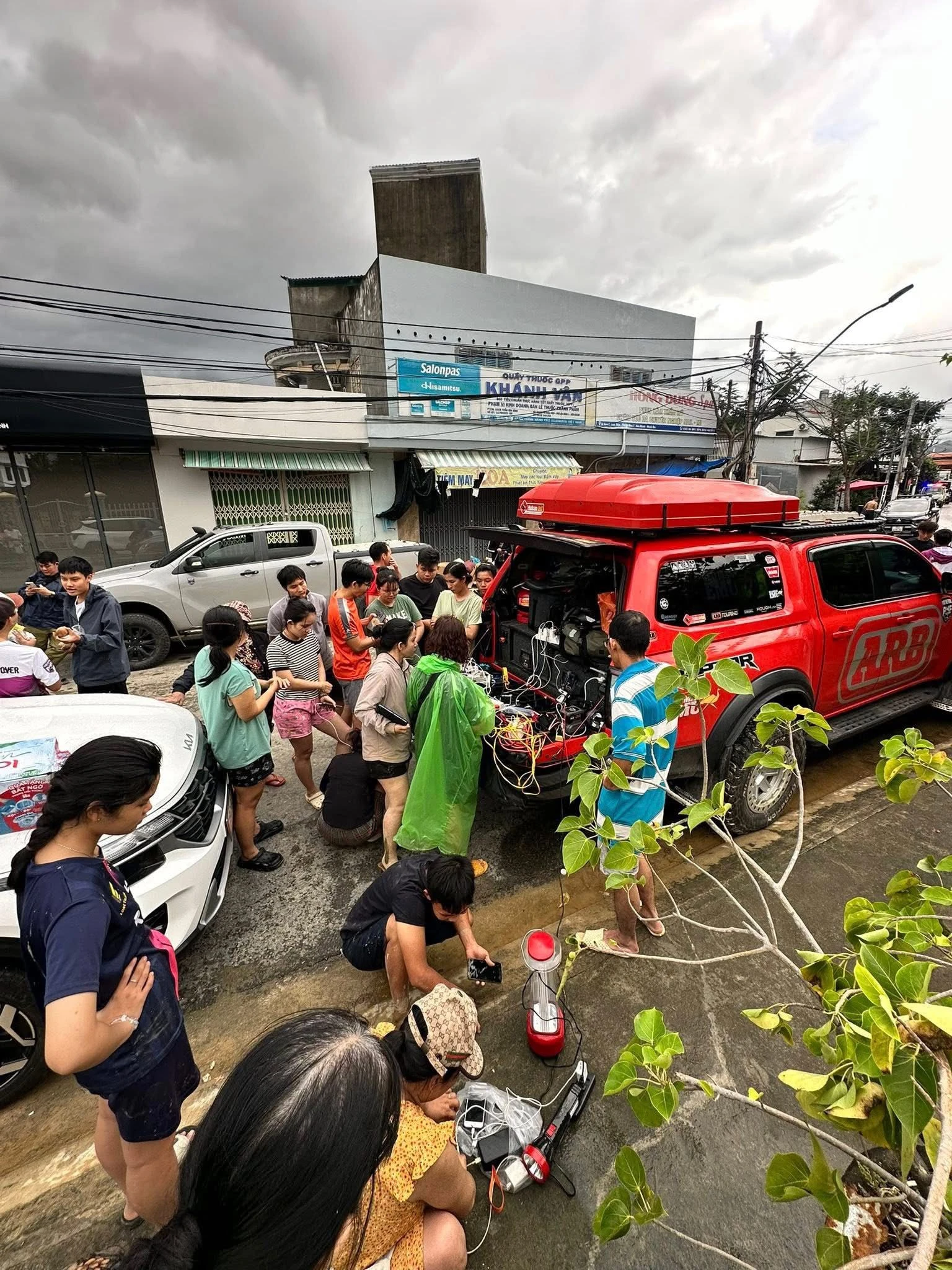 Được biếtm anh Mẫn Phan cùng đội cứu trợ từ TP HCM đã có mặt tại Nha Trang. Anh và đội của mình mang theo nguồn điện để người dân sạc điện thoại, gọi về cho gia đình sau những ngày mưa lũ.
