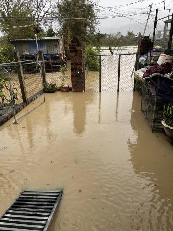 Sáng 24/11, tại khu vực phường Nhơn Bình cũ, nước vẫn ngập đến sân nhà, khiến sinh hoạt của người dân bị ảnh hưởng.