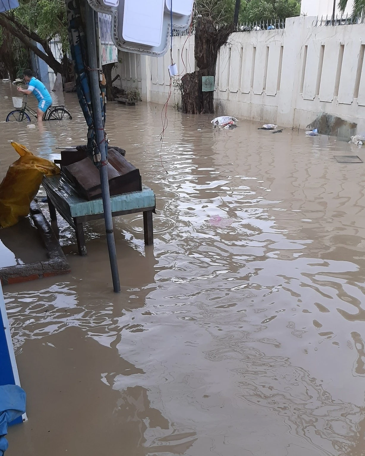 Trước đó chưa lâu, khắp các phường thuộc Quy Nhơn cũ vừa trải qua trận lụt kinh hoàng từ hôm 18-19/11. Nước vừa rút chưa lâu, người dân chưa kịp dọn dẹp xong lớp bùn non , nước đã dâng trở lại.