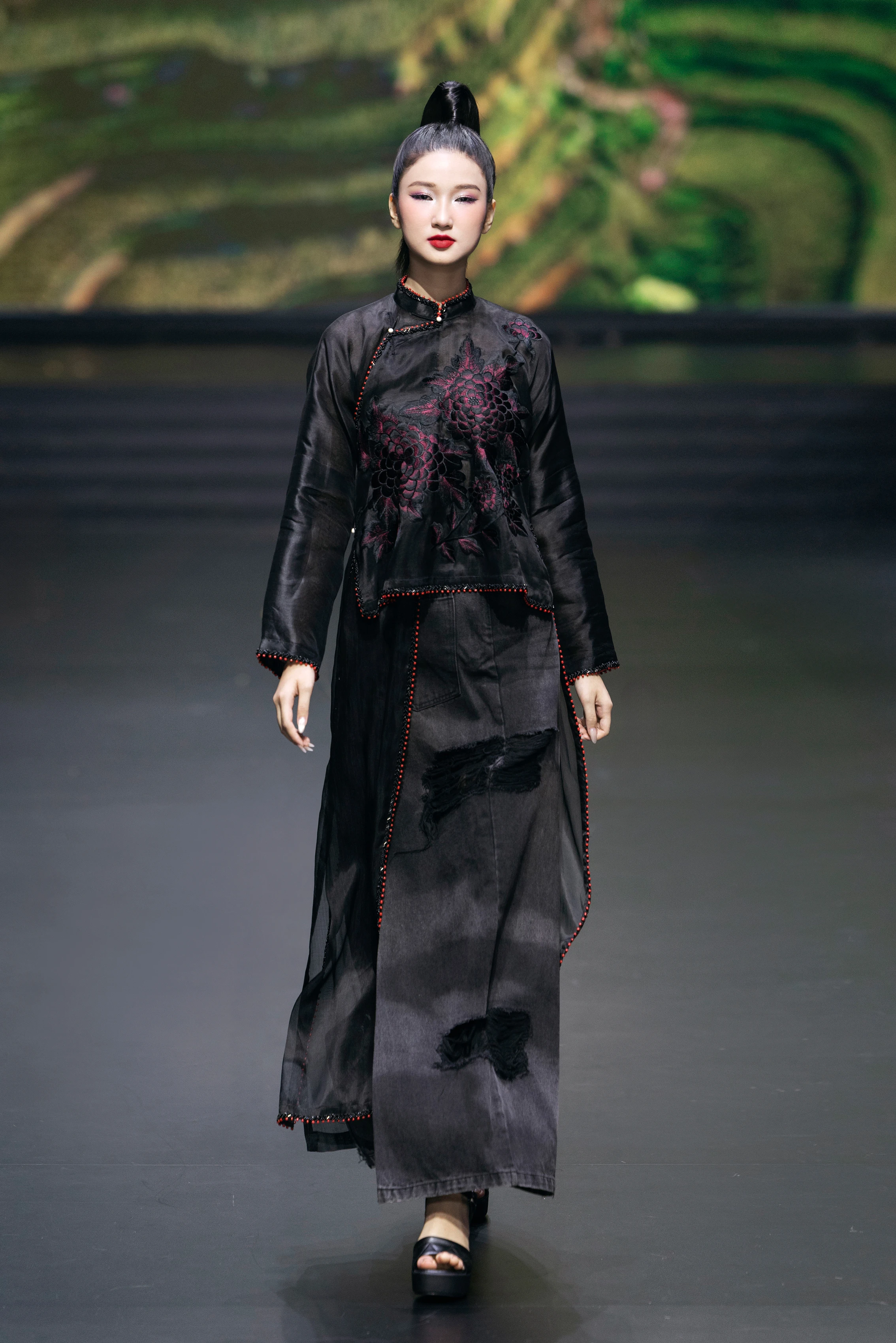 Với Vũ Việt Hà, cảm hứng sáng tạo thường bắt đầu từ những khoảnh khắc bất ngờ như lần vô tình bắt gặp bộ trang phục của cô gái Dao đầu bằng giữa phiên chợ Bắc Hà rực rỡ, hay sự mê hoặc trong từng đường nét thổ cẩm của người Mông, Nùng Dín... Tất cả những mảnh ghép văn hóa ấy được anh gom nhặt, chắt lọc và thổi thành khúc phiêu du sống động vùng cao Tây Bắc trong bộ sưu tập lần này.