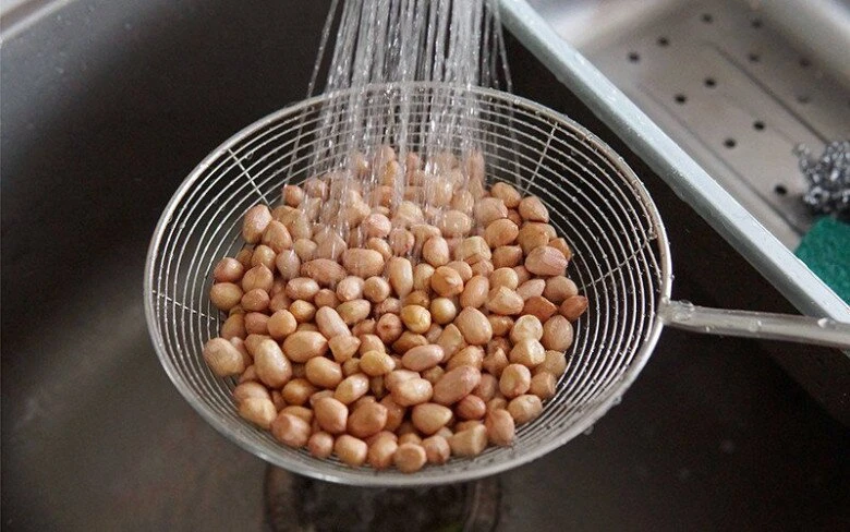 - Rửa và ngâm lạc khoảng 5 phút, không để ngấm nước quá nhiều.