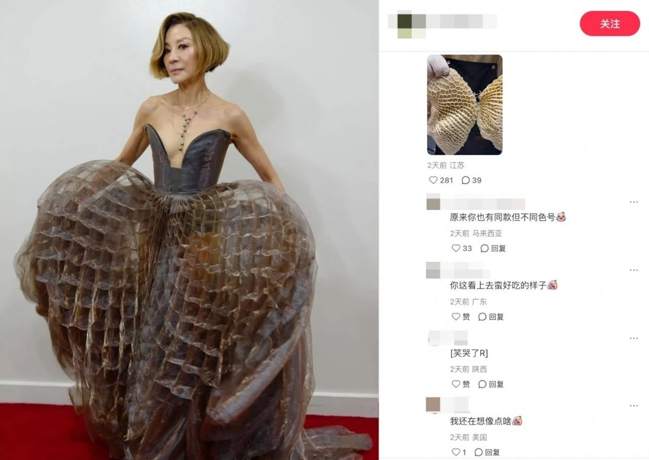 Chiếc váy cao cấp của Dương Tử Quỳnh bị cư dân mạng châu Á ví như “sách bò” (Ảnh: Sohu).