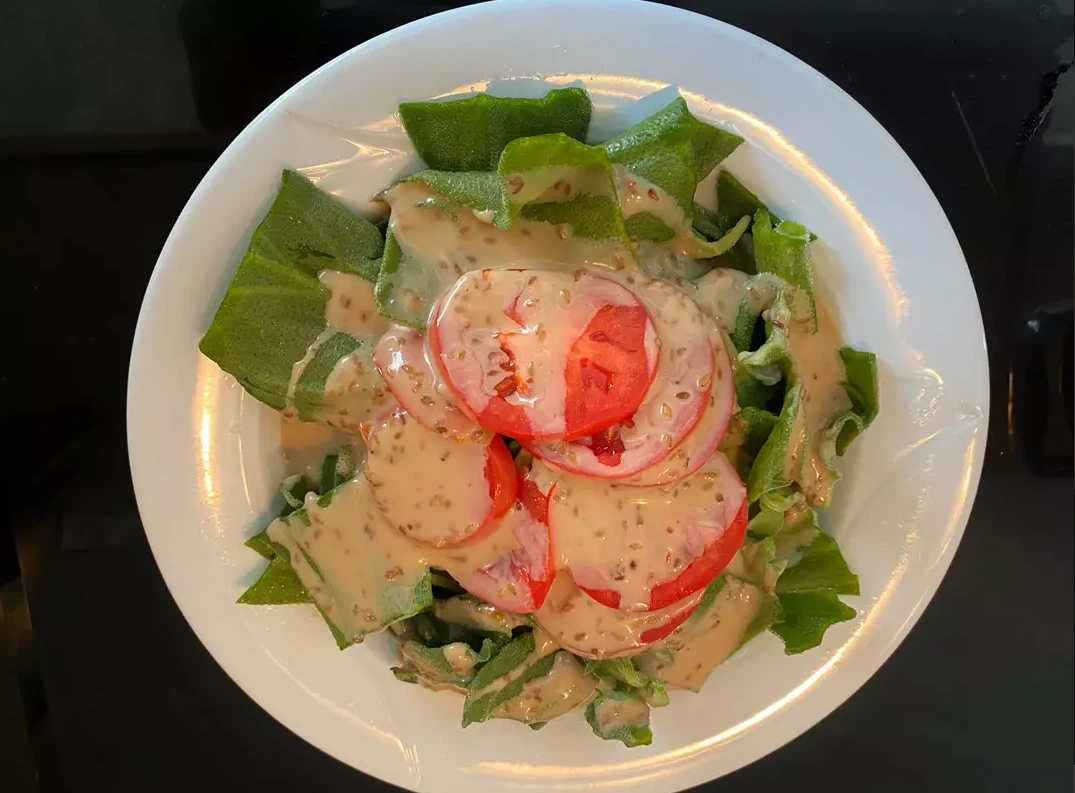 Salad rau bông tuyết cà chua: Rửa sạch rau và cà chua. Thái rau và cà chua thành từng lát vừa ăn. Cho nước sốt vào, trộn đều và thưởng thức. Đây là cách làm salad cơ bản nhất. Chị em có thể sử dụng thêm một số loại hoa quả hoặc rau yêu thích tùy khẩu vị của mình.