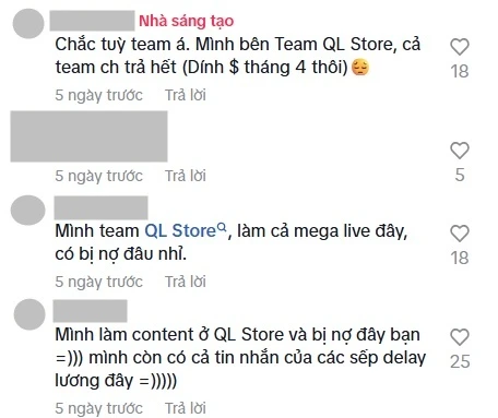 Tuy nhiên cũng có người khẳng định không có chuyện nợ lương: “Mình team QL Store, làm cả megalive đây, có bị nợ đâu nhỉ” .