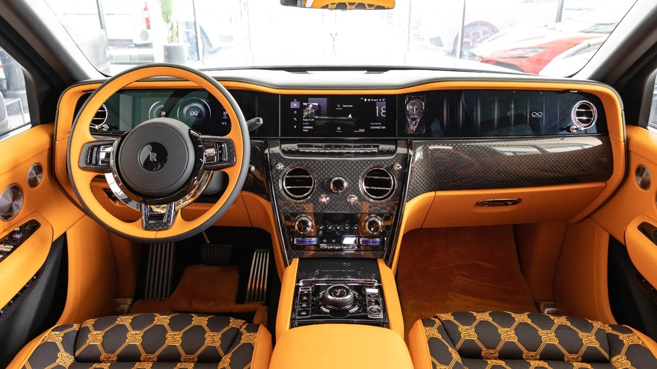 Khoang nội thất được đơn vị nhập khẩu lựa chọn tông màu xanh dương lạ mắt, kết hợp cùng màu đen thay cho kiểu màu nâu da bò hay màu đen truyền thống được nhiều đại gia lựa chọn ở Cullinan Series I.