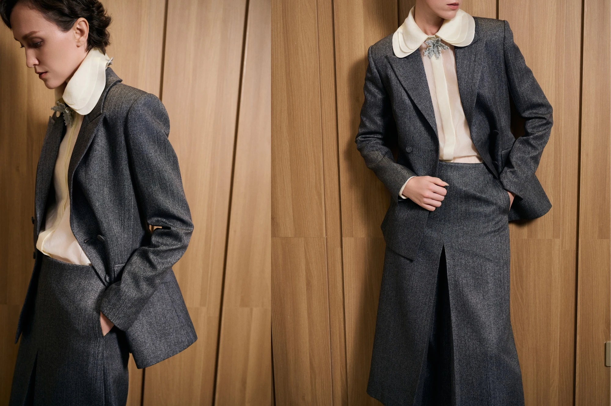Trên các sàn diễn quốc tế từ Paris, Milan đến Seoul, sắc xám, ghi sẫm, bạc thiếc xuất hiện dày đặc trong các bộ sưu tập mới. Những chiếc áo blazer dáng rộng, áo măng tô dạ cổ điển, đầm midi xếp ly hay chân váy bút chì phối sơ mi ánh bạc đều thể hiện rõ tinh thần của thời trang công sở hiện đại: chỉn chu, mềm mại nhưng vẫn giữ được nét cá tính riêng. Sự chuyển mình của gam màu trung tính này không còn bó buộc trong khuôn khổ văn phòng mà mở rộng sang nhiều bối cảnh khác từ sự kiện, dạ tiệc đến dạo phố. Điều đó làm nên dáng vẻ sành điệu vượt bậc trong một sự chỉn chu đầy cơ bản mà cuốn hút.