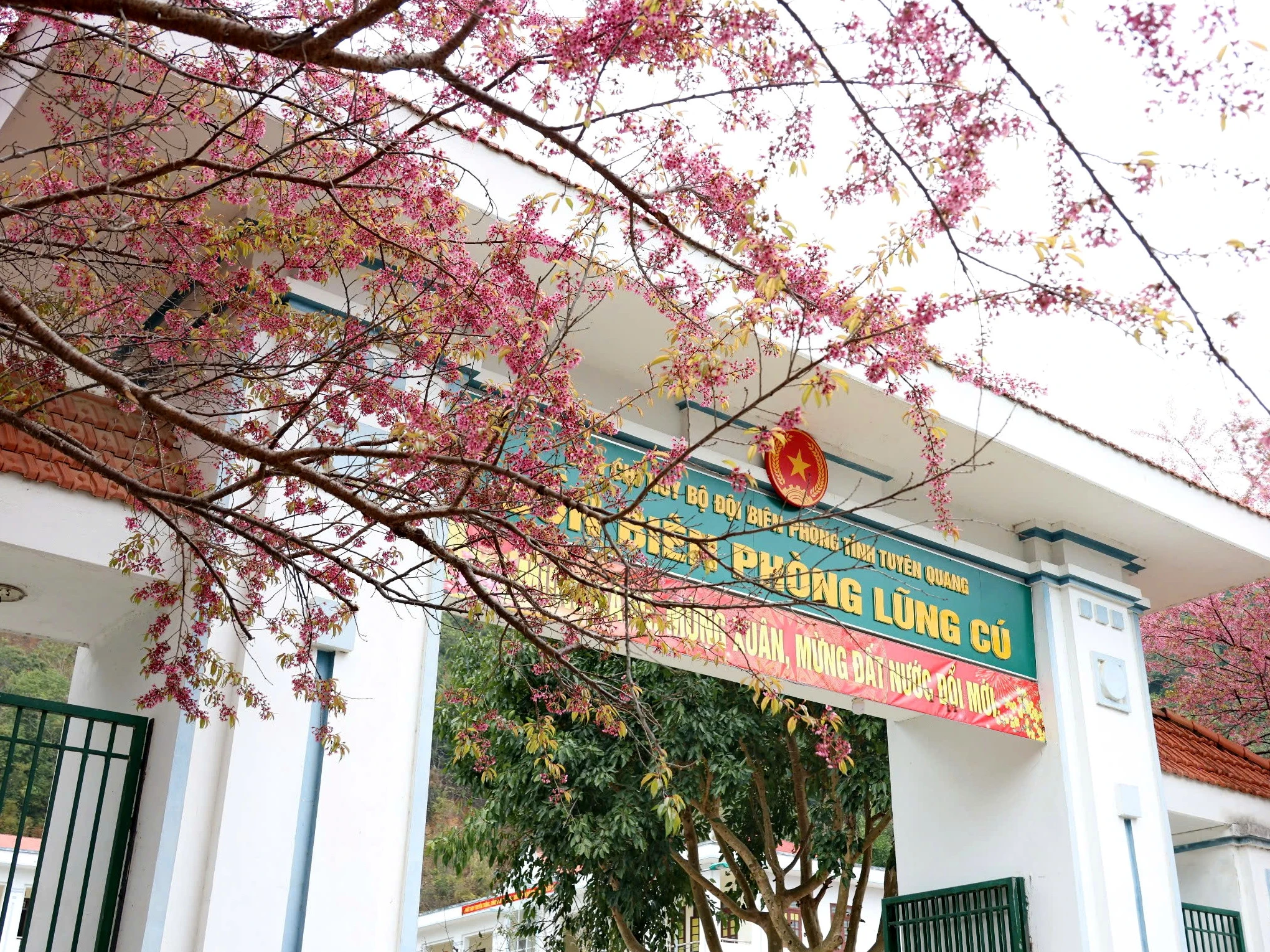 Hoa anh đào tại Đồn biên phòng Lũng Cú và trường mầm non Lũng Cú