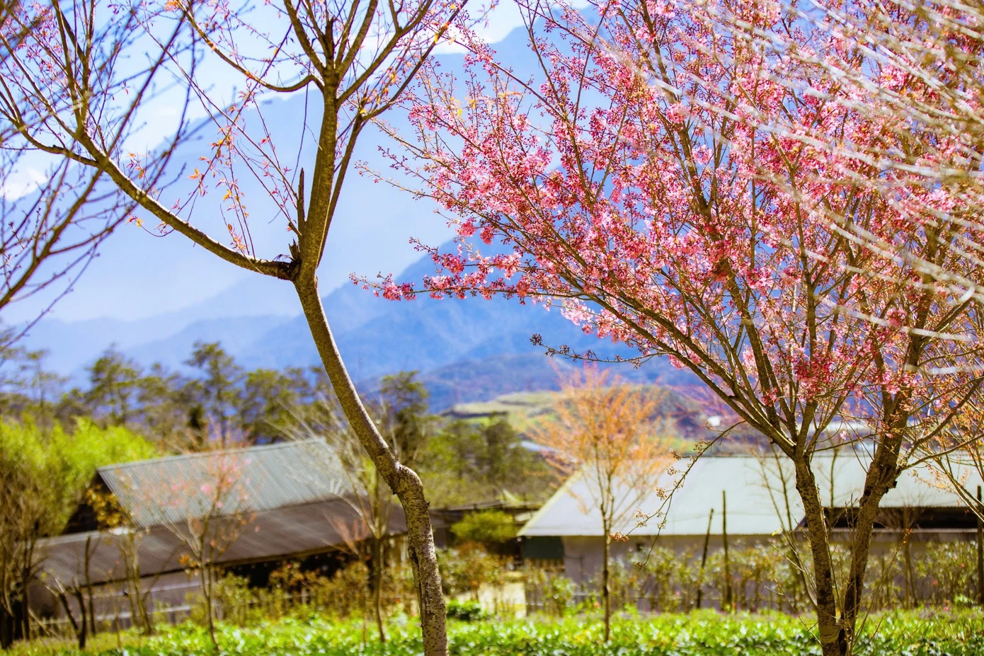Lên Sa Pa ngắm mai anh đào hồng rực nhuộm cả đồi chè Ô Long