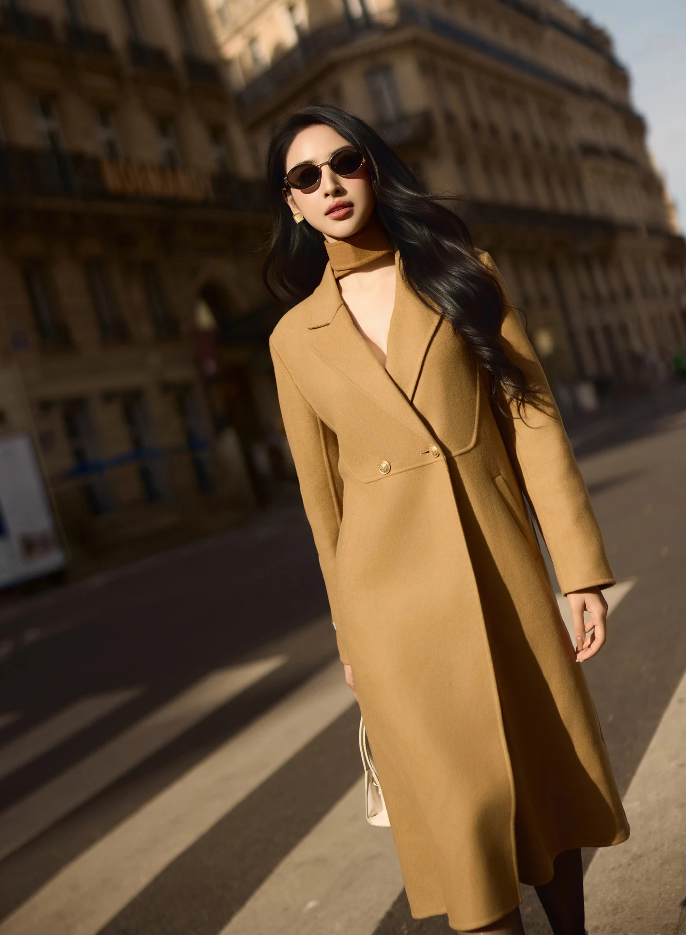 Áo khoác dài màu nâu camel là “chân ái” của mọi chị em. Thiết kế dạ ép lông cừu vừa mềm nhẹ vừa đứng dáng đi cùng gam màu “quốc dân” nên có thể phù hợp với mọi bản phối