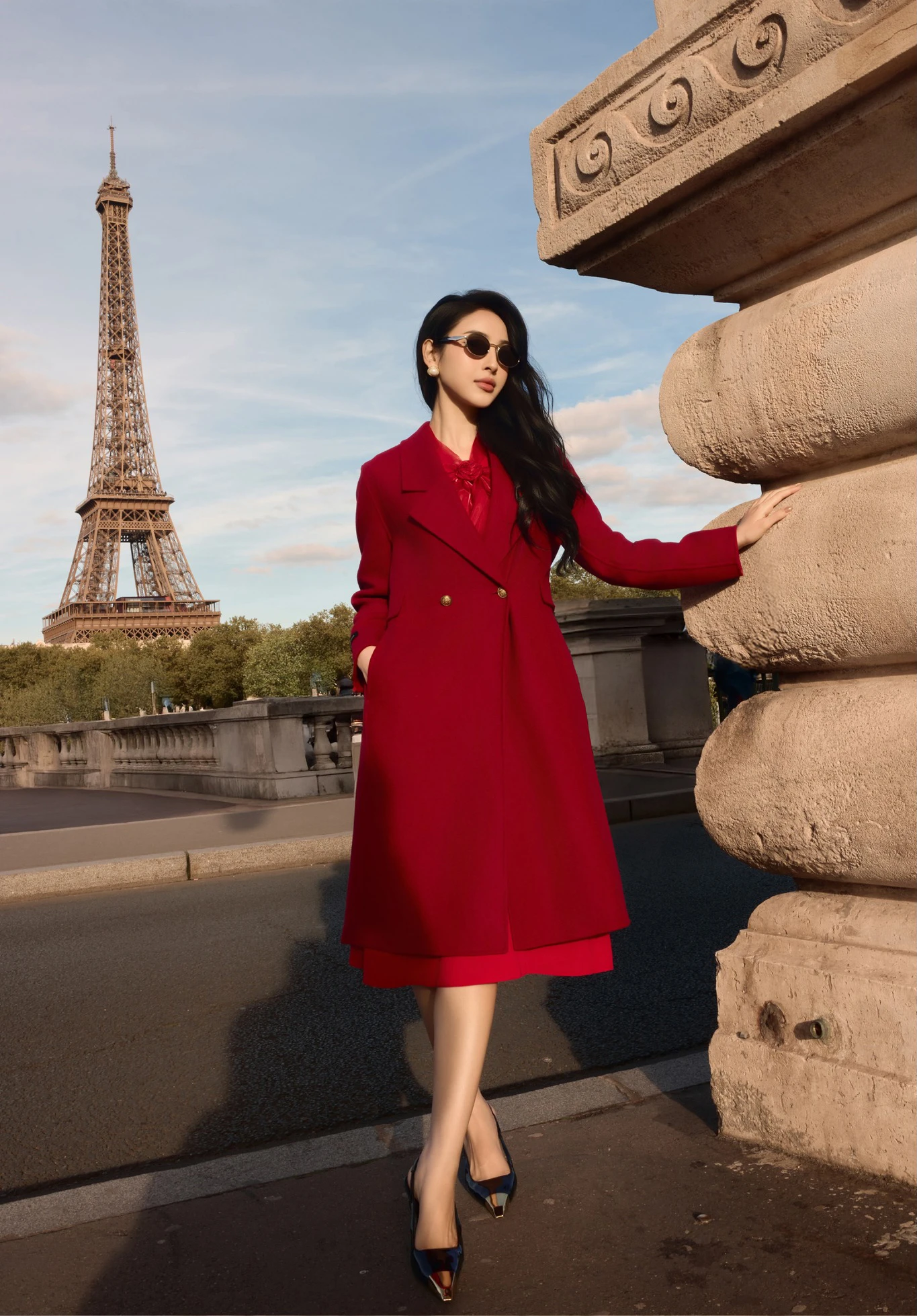 Sắc đỏ đô nổi bật và tươi sáng hoàn hảo cho bản phối đồng bộ cùng đầm liền dáng dài. Thiết kế áo khoác lấy cảm hứng từ phần cổ blazer mang đến hình ảnh hiện đại và trang nhã. Quý cô hãy luôn chú ý chọn trang phục có độ chênh lệch về độ dài để có thể tạo nên chiều sâu thị giác cho từng bản phối