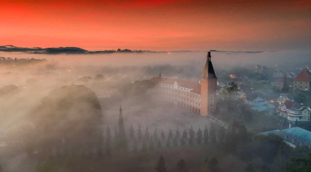 Trường Cao đẳng Sư phạm Đà Lạt huyền ảo trong khoảnh khắc bình minh. Ảnh: Trần Quang Anh.