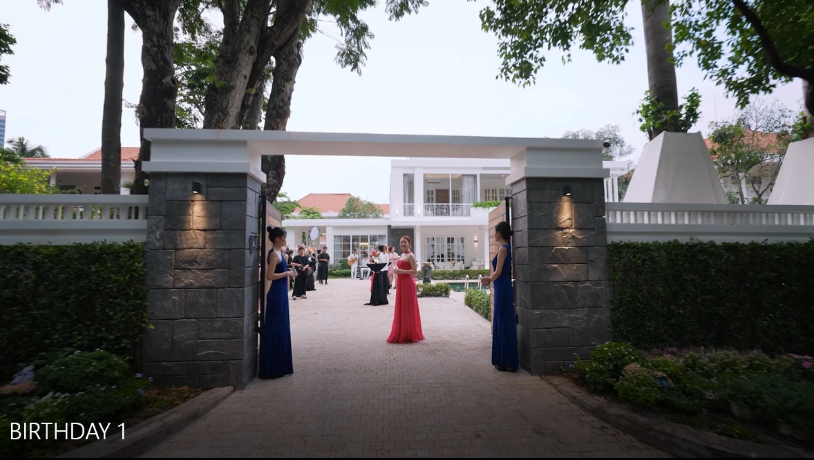 Trong clip dài 9 phút, cư dân mạng còn choáng váng trước khung cảnh rộng rãi, bề thế của căn biệt thự nhà Lý Thùy Chang – Chi Bảo. Tổ ấm của cặp đôi có cả hồ bơi, khoảng sân vườn trồng nhiều loại cây. Được biết, khuôn viên của căn biệt thự này rộng hàng trăm mét vuông. Dưới phần bình luận, nữ doanh nhân còn chia sẻ thêm với bạn bè: “Mê lắm. Mùa này ra chợ cái gì cũng thích vác về. Nhà em sắp kín sân thật rồi”.