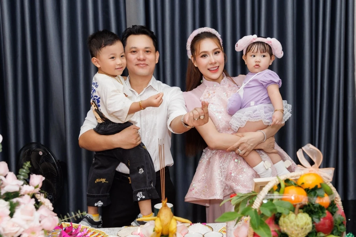 Đại gia đình Hồ Bích Trâm quây quần, bày biện mâm cúng mừng bé Ruby tròn một tuổi. Hồ Bích Trâm cho biết nhà cô không làm tiệc rình rang, chỉ chuẩn bị mâm cúng tối giản theo phong cách hiện đại. Diễn viên cho biết rất hạnh phúc khi chứng kiến con ngày một khôn lớn, cứng cáp.