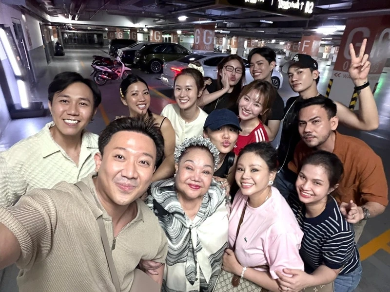 MC Trấn Thành mừng sinh nhật muộn diễn viên Lê Giang, vui vì gia đình lâu lắm mới tập hợp đông đủ.