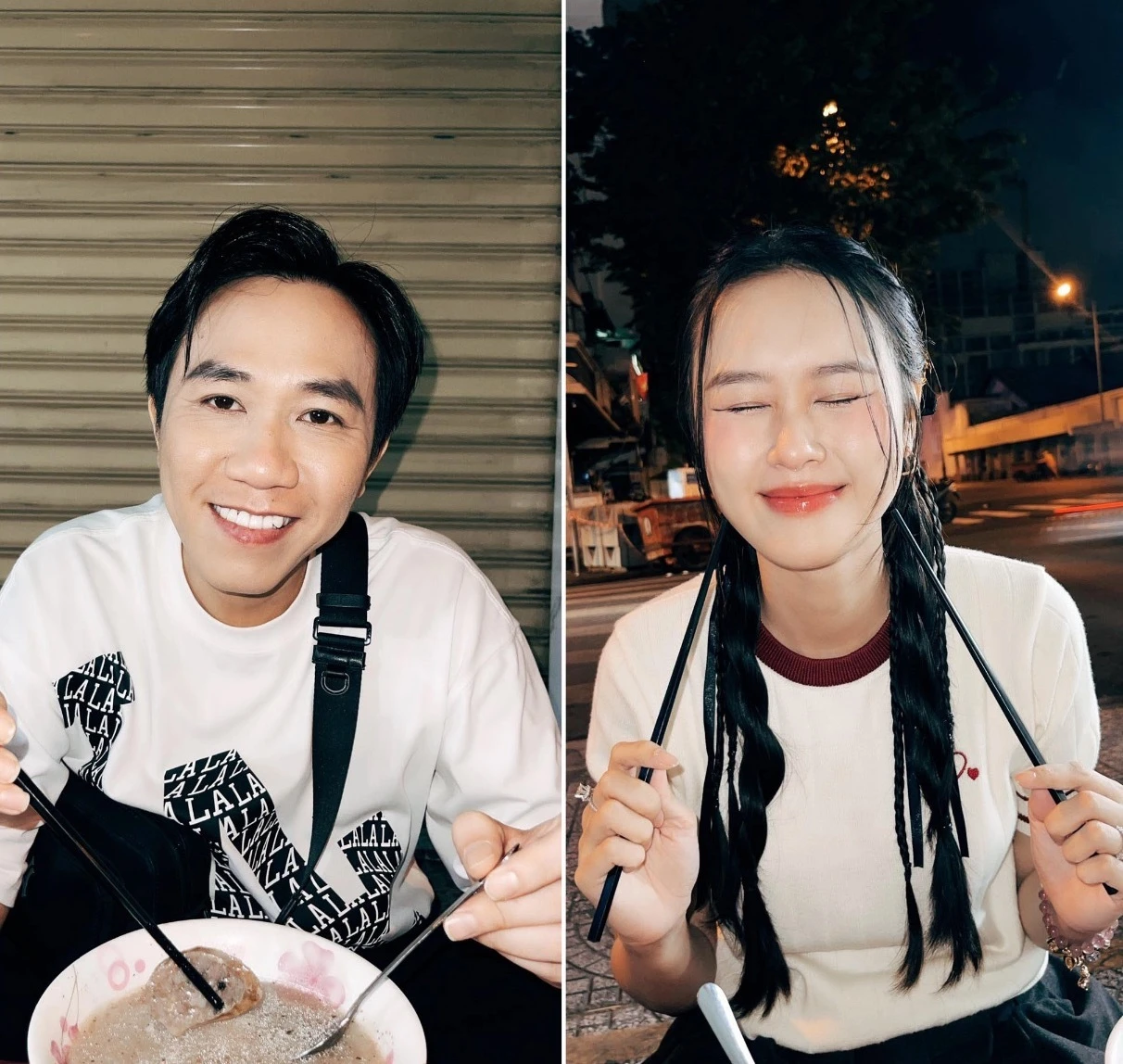 Diễn viên Anh Phạm khoe ảnh hẹn hò buổi tối bên ông xã Anh Đức: “Cùng tan làm, cùng đi ăn đêm”.