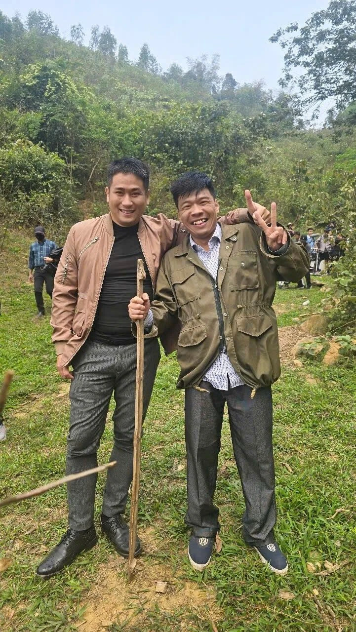 Diễn viên Minh Tiệp đăng ảnh hậu trường phim “Cha tôi người ở lại” với Trung Ruồi.