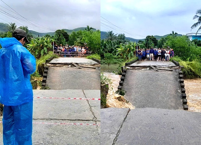 Sập cầu ở Quảng Ngãi, người đi xe máy rơi xuống dòng nước chảy xiết