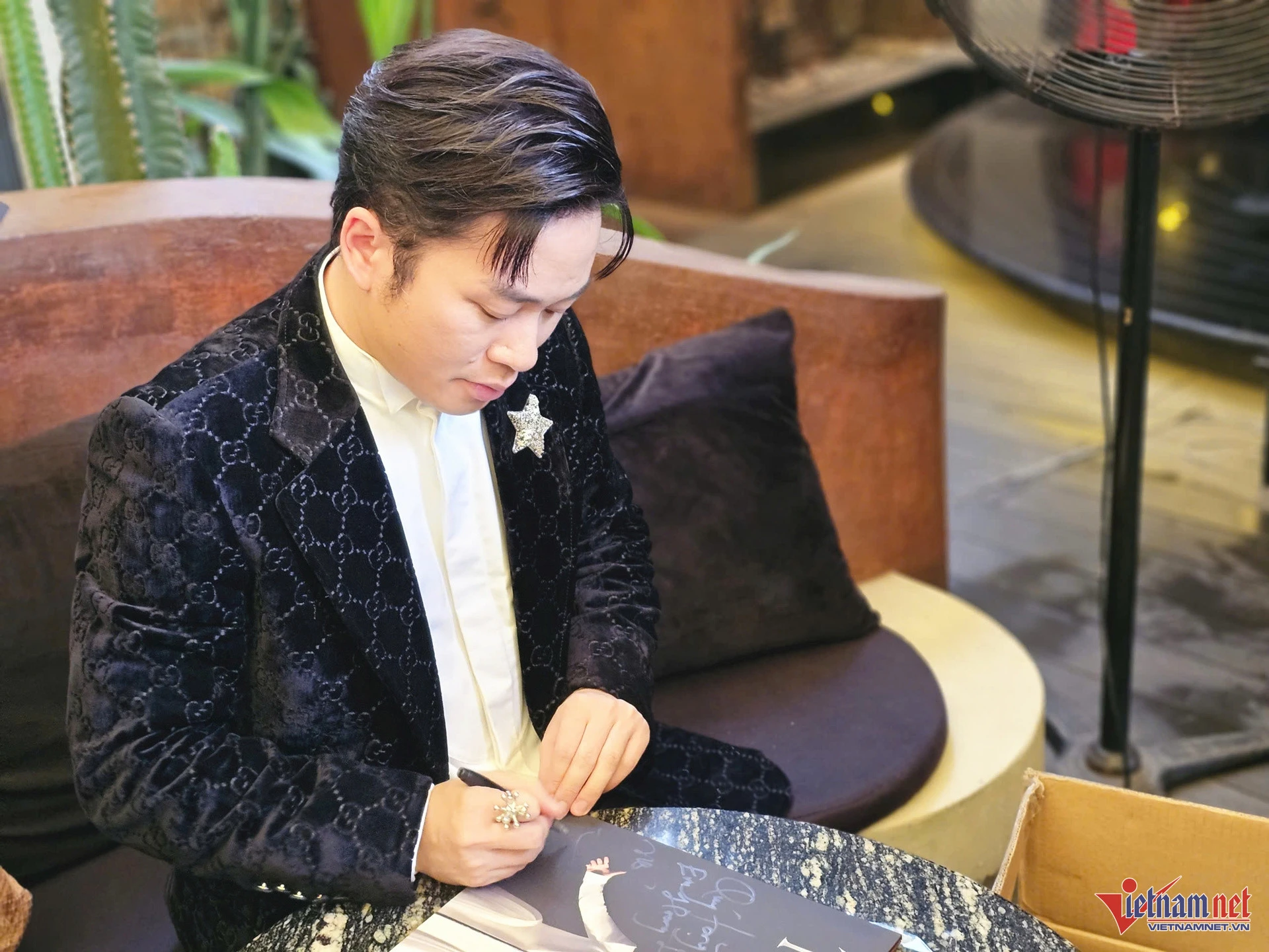 Tùng Dương ký tặng đĩa mới. Ảnh: Loan Lê