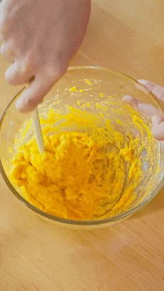 Trứng là “chìa khóa” giúp bánh mềm mịn hơn, vì vậy đừng bỏ qua nhé. Bí đỏ xay hoặc nghiền mịn rồi trộn với bột, đường, men; tùy độ ẩm của bí mà chỉnh lượng bột để được hỗn hợp đặc sệt vừa phải. Để ủ một lúc là đạt. Chỉ cần đổ ra bát, rắc thêm vài hạt vừng đen và vài lát táo tàu cho đẹp mắt, bánh hấp xong thơm nức, mềm mướt, cực kỳ hợp thời tiết thu đông.