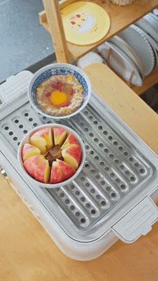 Điều khiến set bữa sáng này được yêu thích chính là tính dưỡng sinh mà không hề phức tạp. Một nồi hấp duy nhất nhưng đủ món mặn – ngọt – tráng miệng, không dầu mỡ, không phải trông bếp quá lâu. Sáng trời se lạnh, chỉ cần mở nắp nồi và hít hà hơi nóng cũng thấy lòng nhẹ bẫng, người ấm hơn và tinh thần dễ chịu hơn cả ngày.