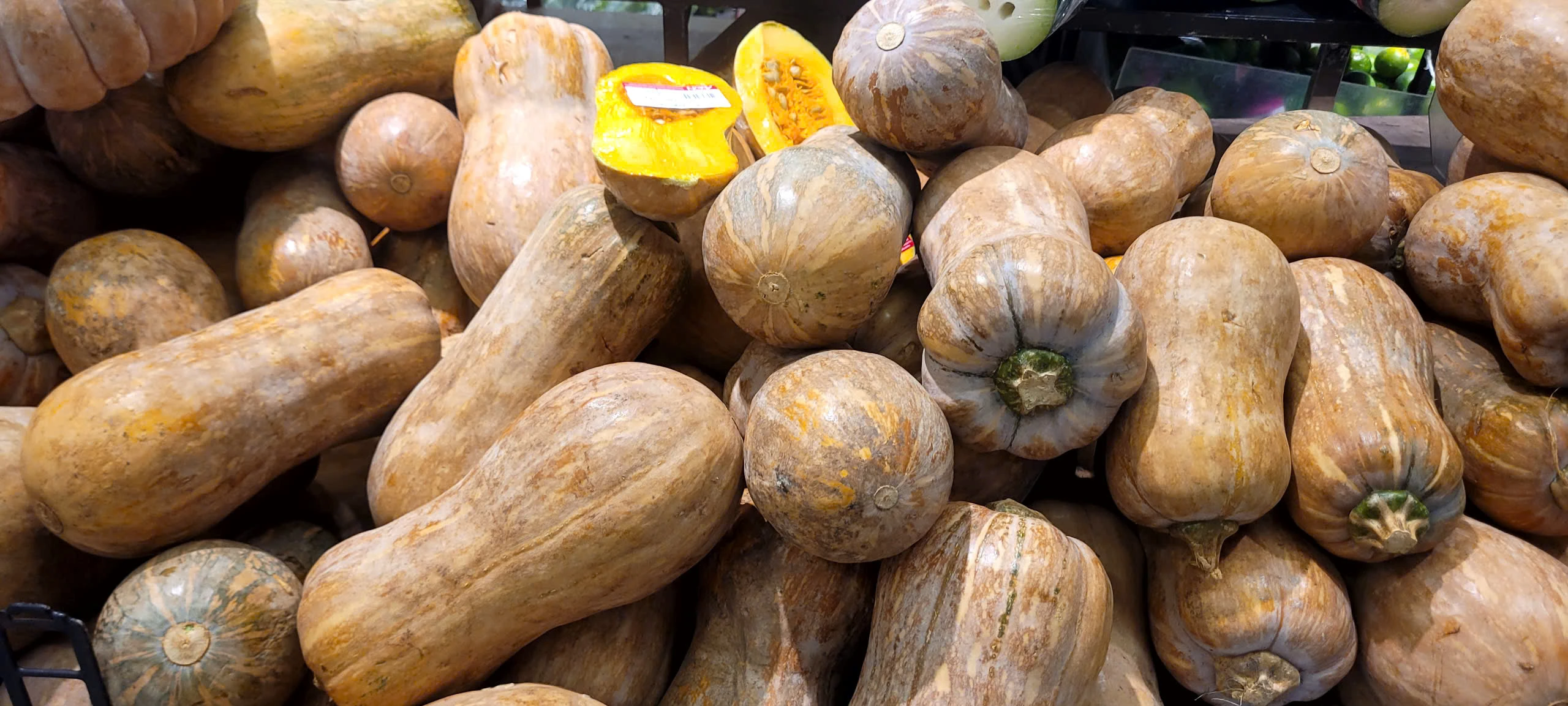 Bí đỏ là thực phẩm tốt trong mùa thu. Ảnh P.T (Chụp tại Siêu thị Aeon Mall Hà Đông)