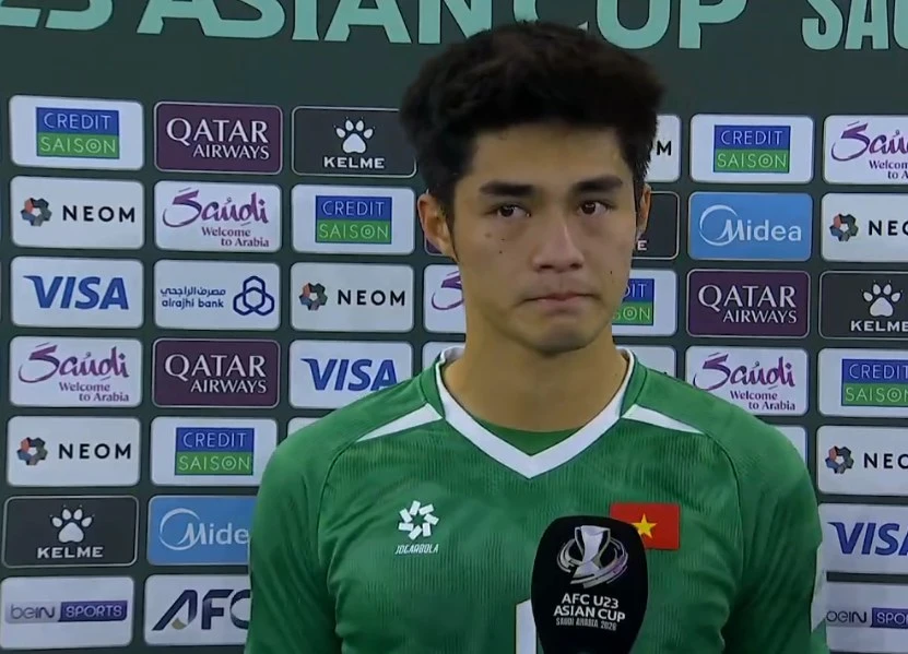 Thủ môn U23 Việt Nam mắt rưng rưng sau trận thua tại bán kết U23 châu Á 2026.