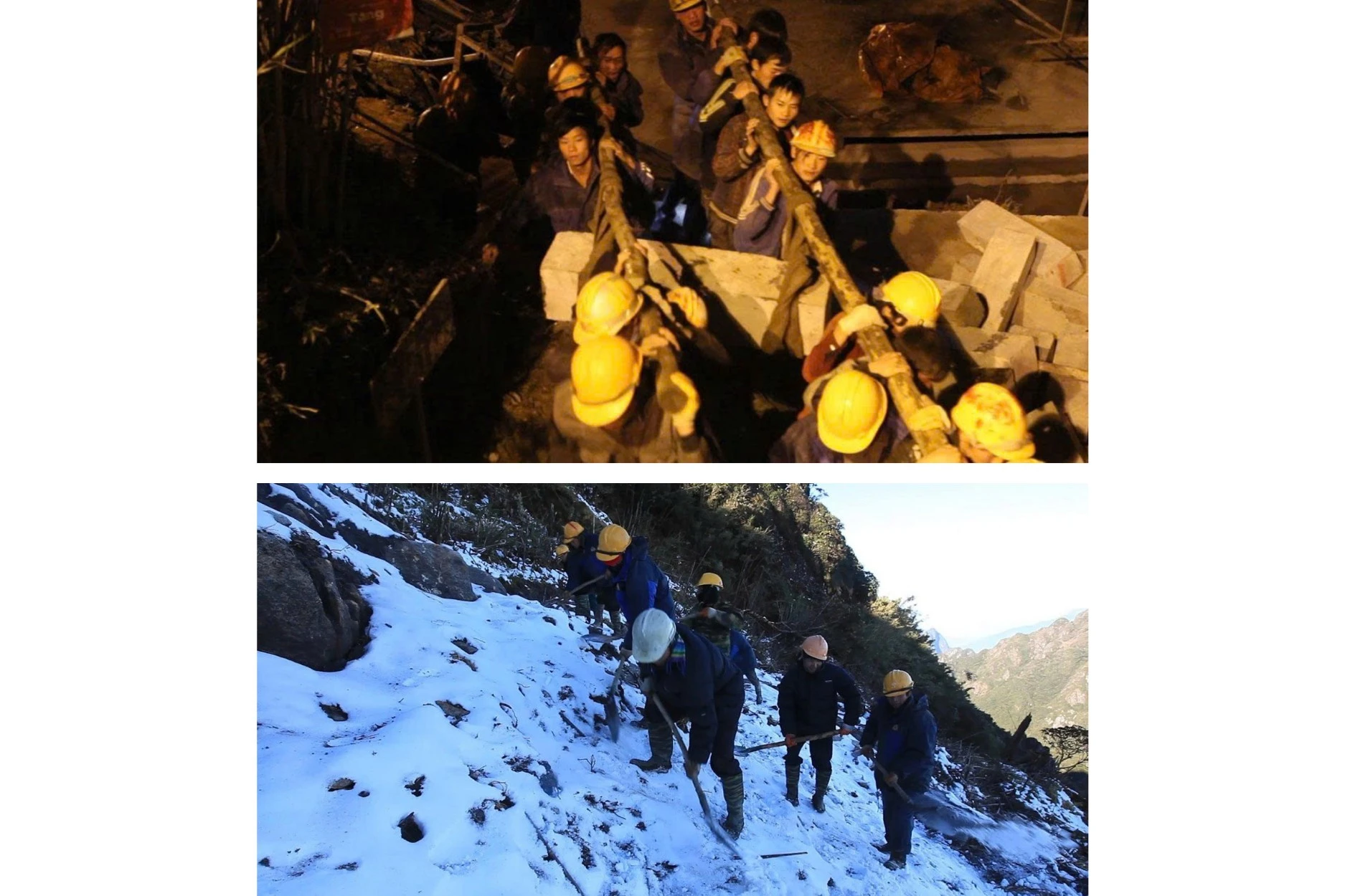 Hơn 4.400 viên đá xanh nặng khoảng 100kg/viên cùng nhiều cấu kiện nặng tới 450kg được đưa từ Thanh Hóa lên Sa Pa rồi tiếp tục gánh bộ lên độ cao hơn 3.000m. Không có máy móc hạng nặng hỗ trợ, mọi công đoạn đều phụ thuộc vào sức người giữa băng giá, gió mạnh và địa hình hiểm trở.