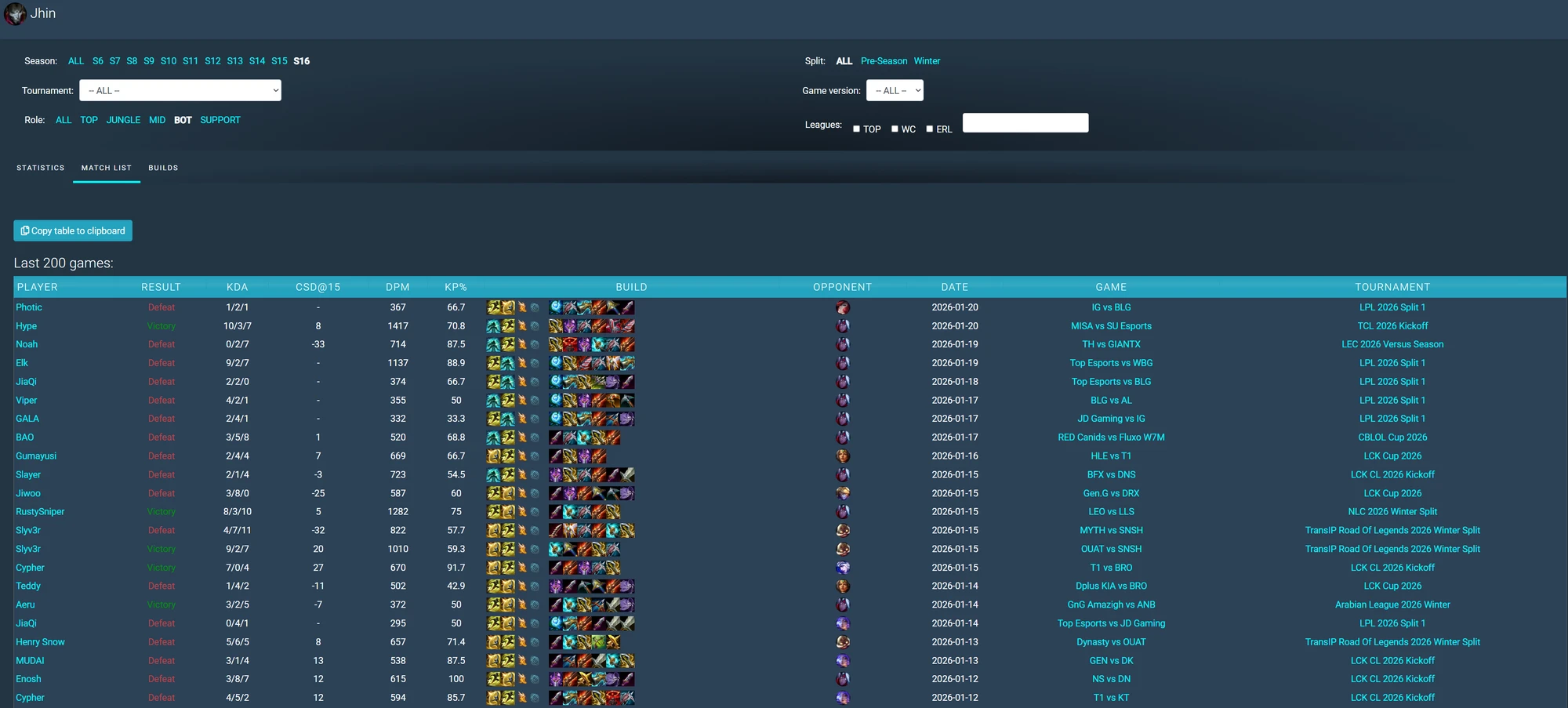 Theo đó, cho đến hiện tại, chỉ có ở các giải hạng đấu thấp là Jhin có thể tìm được chiến thắng. Trong khi đó, tại các giải đấu lớn như LCK hay LPL, tỷ lệ thắng của Jhin vẫn là con số 0 tròn trĩnh, bất chấp nằm trong tay các Xạ Thủ vốn đã quá quen thuộc với vị tướng này như Gumayusi, Viper, GALA. Thậm chí, tính riêng từ khi mùa giải 2026 thực sự bắt đầu (sau KeSPA Cup), chưa có một AD siêu sao nào cải thiện được winrate của Jhin.