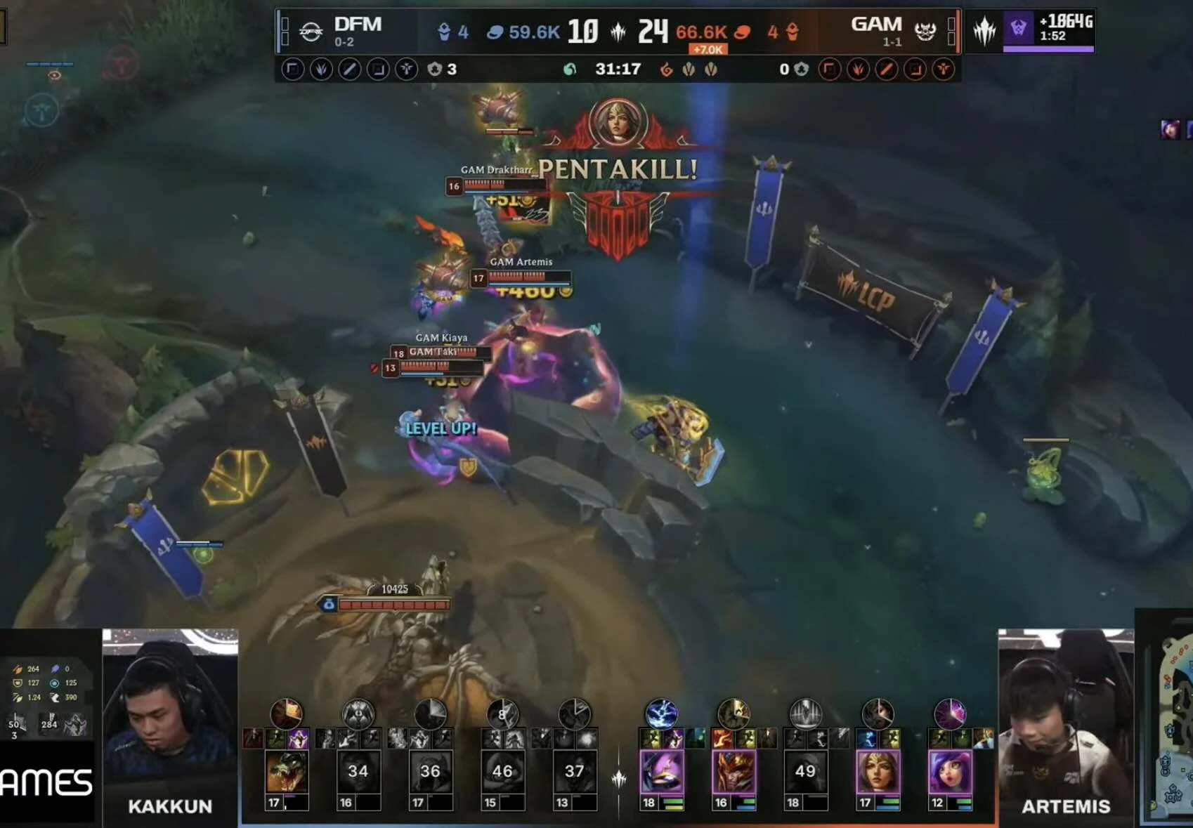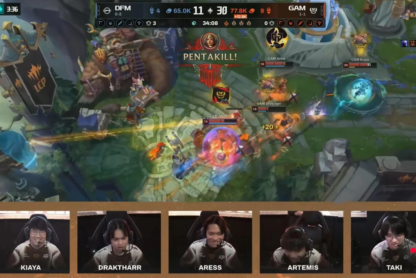 Trong buổi chiều ngày 25/01 (giờ Việt Nam), GAM đã có trận đối đầu với DFM – đối thủ tương đối dễ dàng đến từ khu vực LJL. Dù vậy, GAM vẫn không thể chủ quan, nhất là khi họ đã từng bại trận trước MVK cũng trong tuần thi đấu vừa qua. Tuy nhiên, kết quả cũng không nằm ngoài dự đoán của nhiều người và GAM đã đánh bại đối thủ không quá khó khăn, qua đó vươn lên đứng đầu bảng LCP. Dù vậy, màn thể hiện của siêu sao Artemis thực sự khiến nhiều người bất ngờ.
