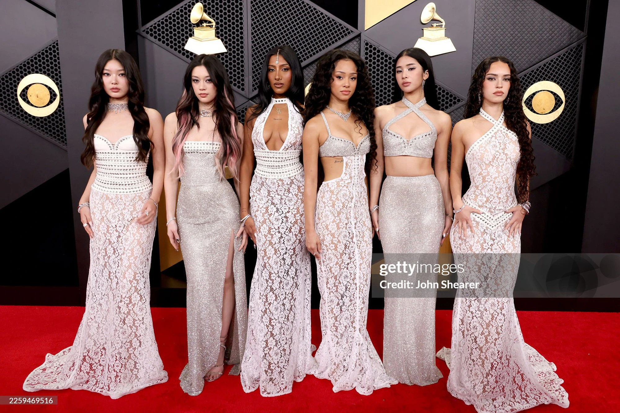 Nhóm nhạc quốc tế nhà HYBE Labels – KATSEYE đã có năm 2025 thành công ấn tượng và xứng đáng sải bước trên thảm đỏ lễ trao giải âm nhạc danh giá nhất hành tinh. Ảnh: Getty Images