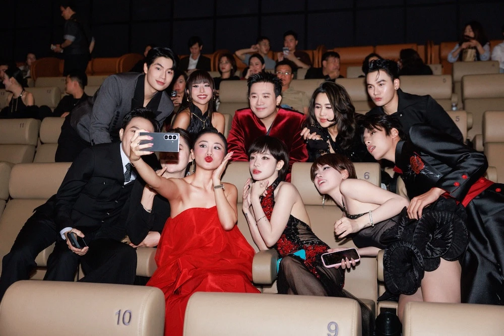 Văn Mai Hương cùng ê-kíp "Thỏ ơi" tại phòng chiếu tối 14/2.
