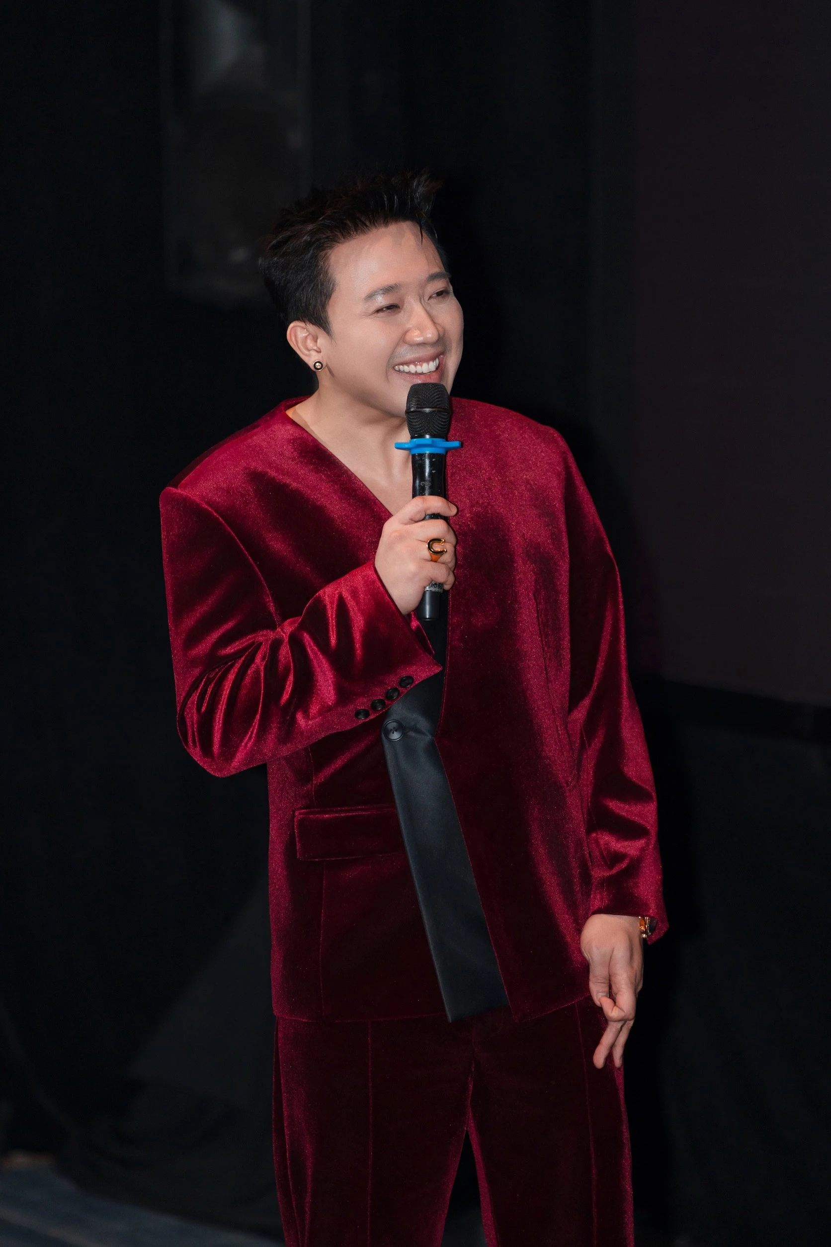 MC Trấn Thành dành những lời có cánh cho NSND Thanh Lam và chắp tay cảm ơn đàn chị tại sự kiện công chiếu "Thỏ ơi!" tối 14/2 tại Hà Nội.