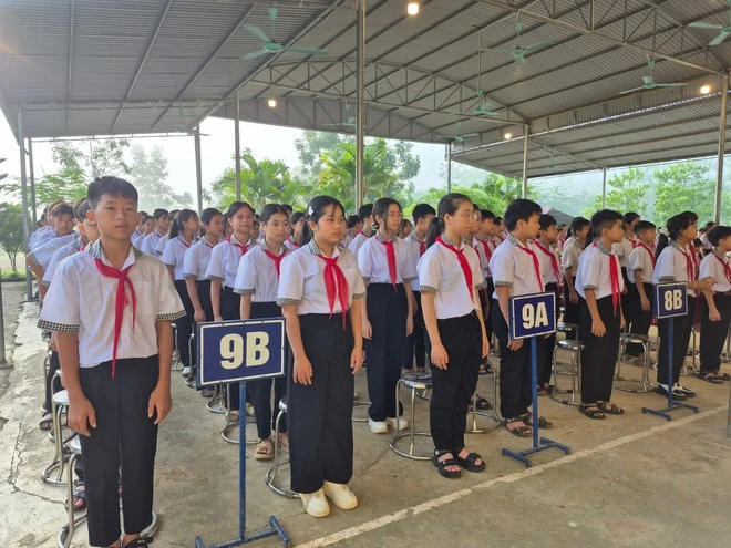 Lễ khai giảng năm học mới của Trường Phổ thông dân tộc bán trú THCS Chiềng Sơ (xã Mường Luân, Điện Biên) được tổ chức tại trụ sở UBND xã Mường Luân (trụ sở xã Chiềng Sơ cũ) do trường bị ảnh hưởng nặng sau lũ.